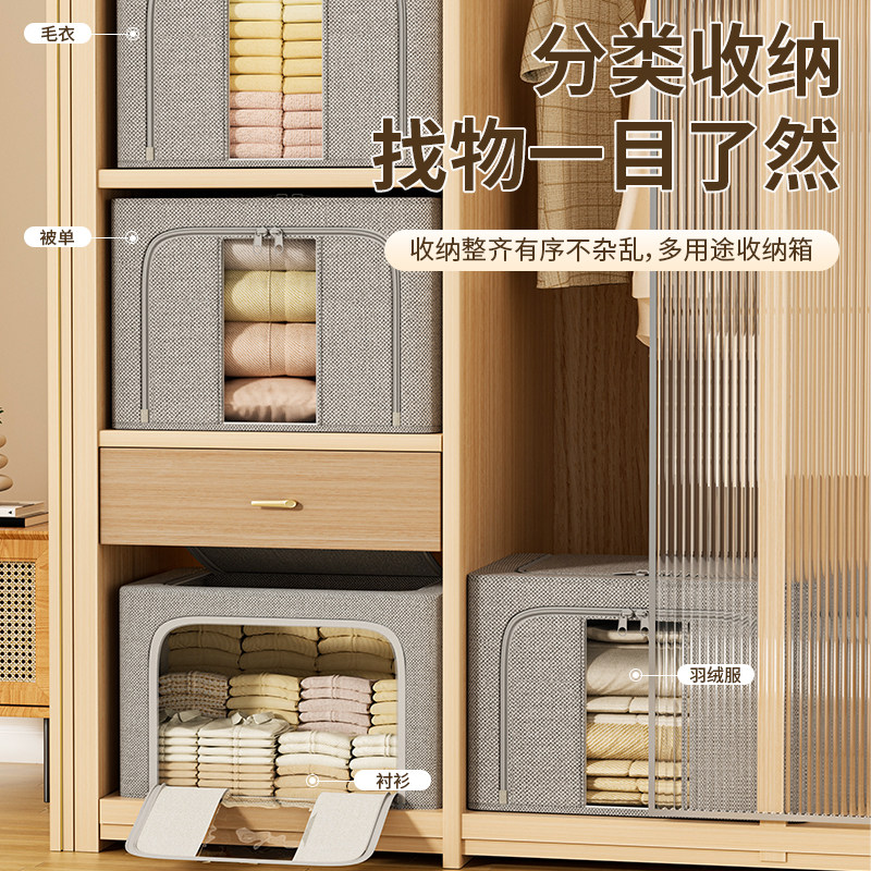 真棉麻加厚衣服收纳箱布艺衣物整理盒折叠衣柜筐袋家用换季新神器
