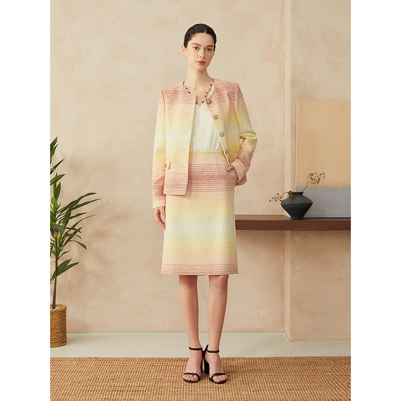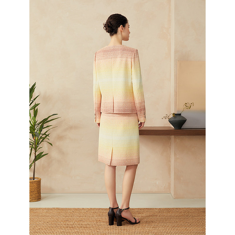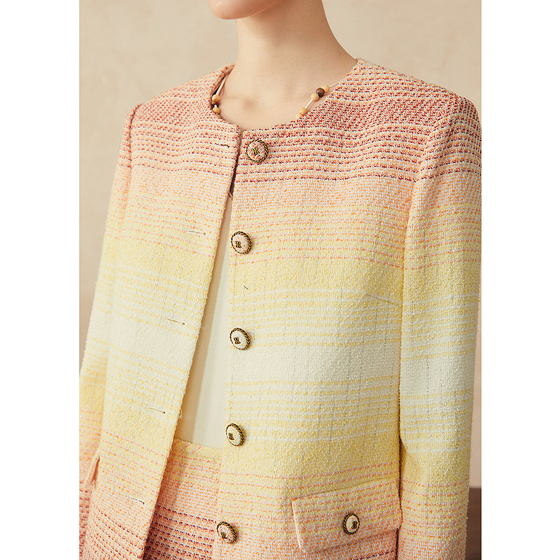 YINER音儿2025春季新款龙舌兰日出渐变花纱小香风直身短外套