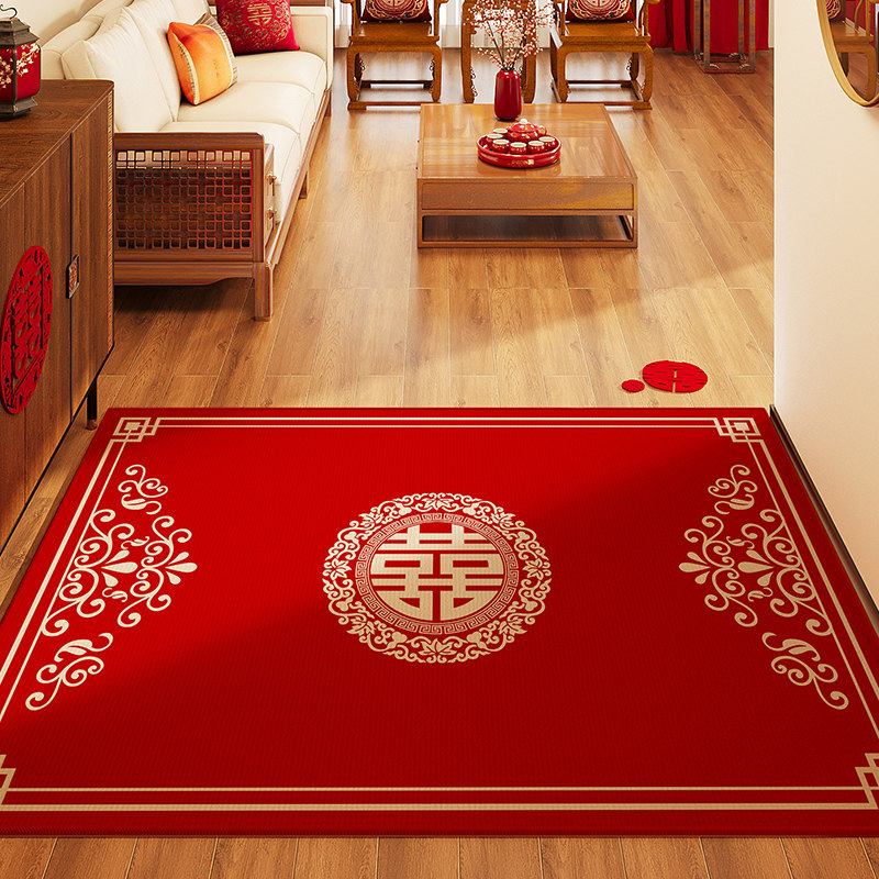 喜字结婚地垫喜庆入户门新中式红色婚房门口进门脚垫入户卧室地毯