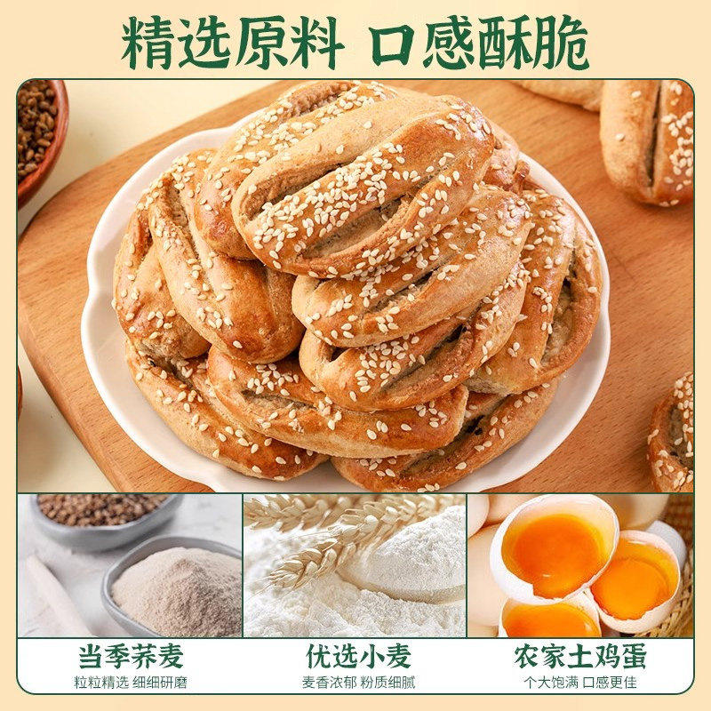 无蔗糖荞麦椒盐酥饼干控糖粗粮饼糕点心牛舌饼零食品健康烧饼好吃