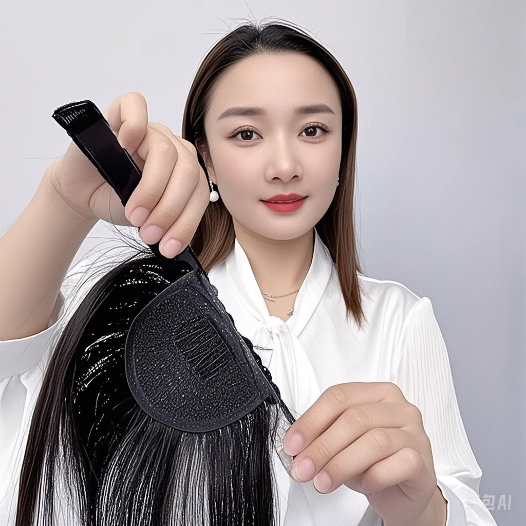 假发片平替发箍刘海一体真发补头顶薄款补发片无痕遮白发真人全真