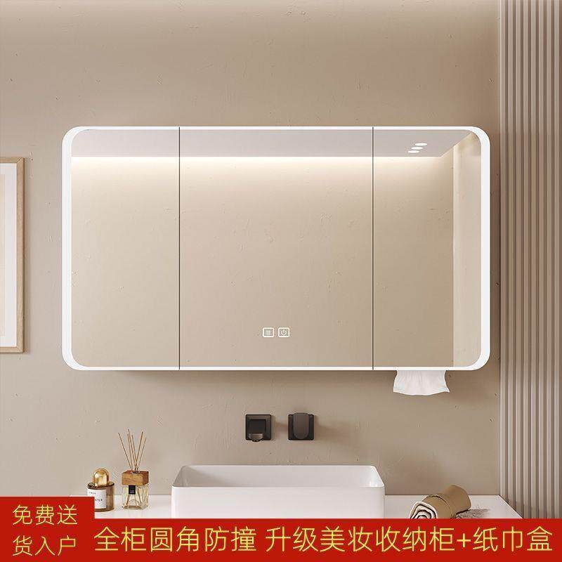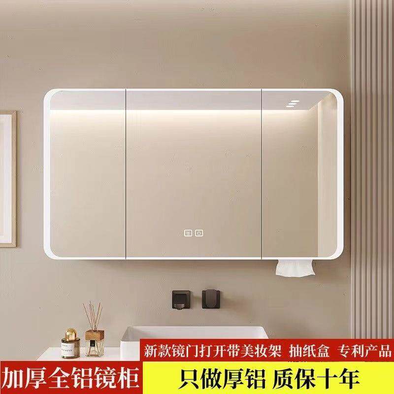 加厚太空铝浴室智能镜柜卫生间挂墙式镜子美妆架收纳一体镜箱凉压