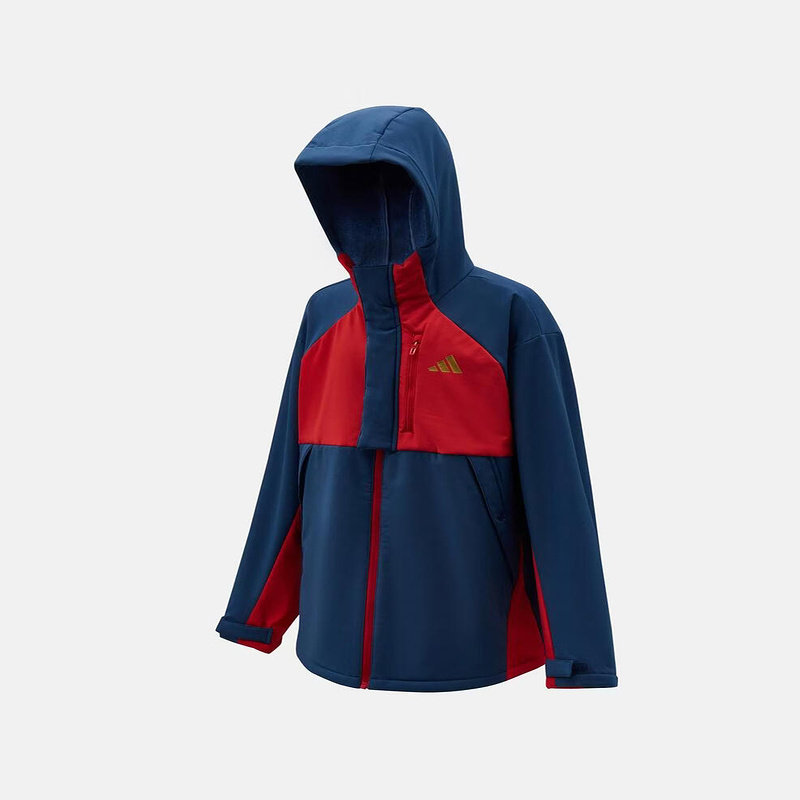 adidas阿迪达斯户外防风加绒保暖连帽外套春男大童梭织夹克KV7009