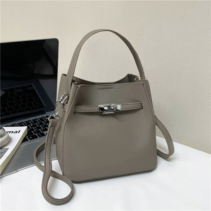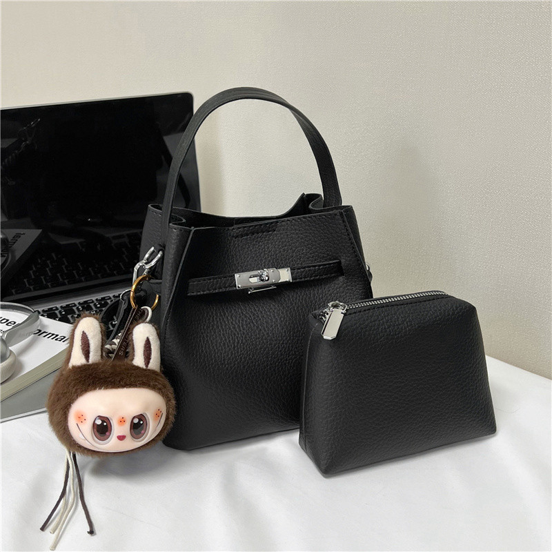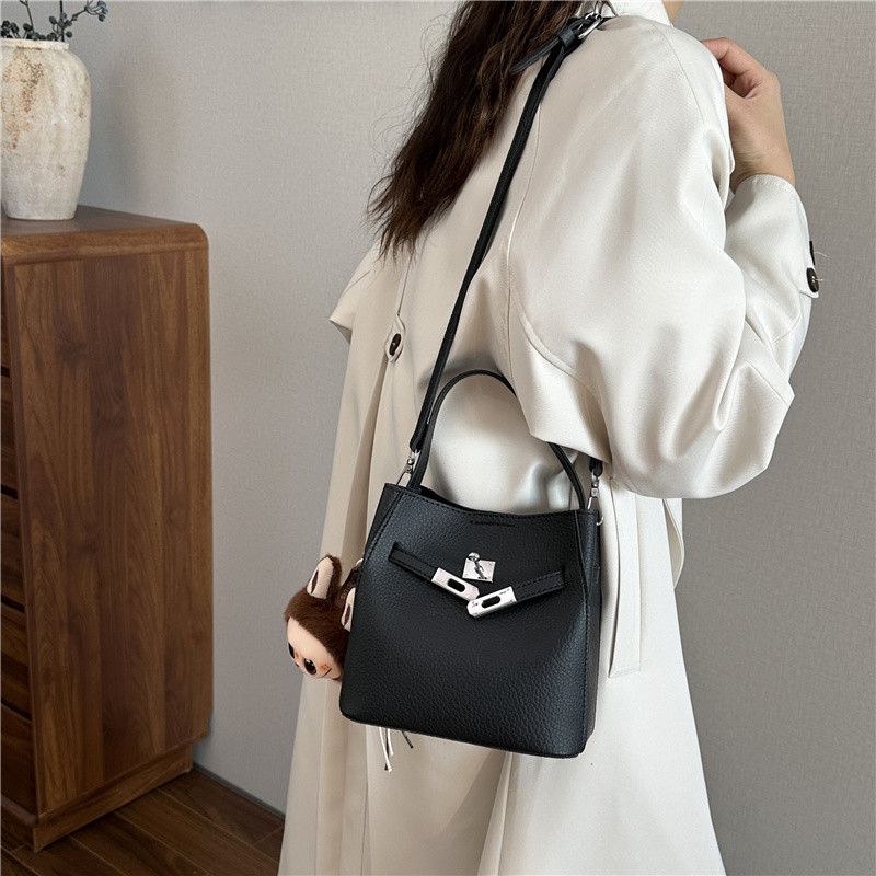 2025新款秋冬季百搭女包软皮小包包斜挎包通勤单肩手提水桶包黑色