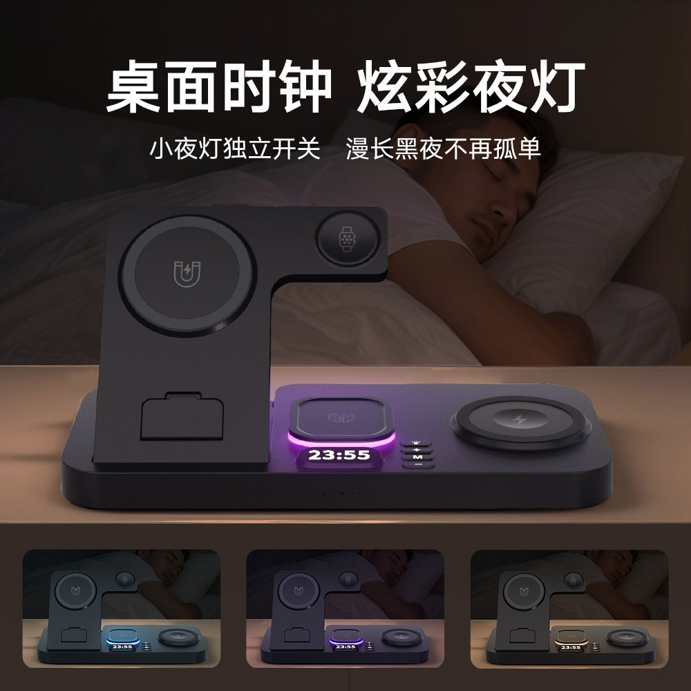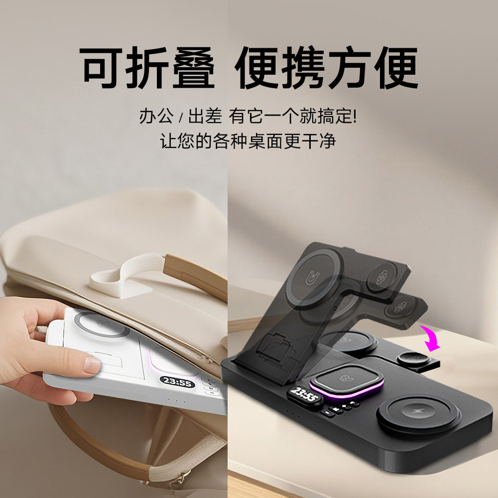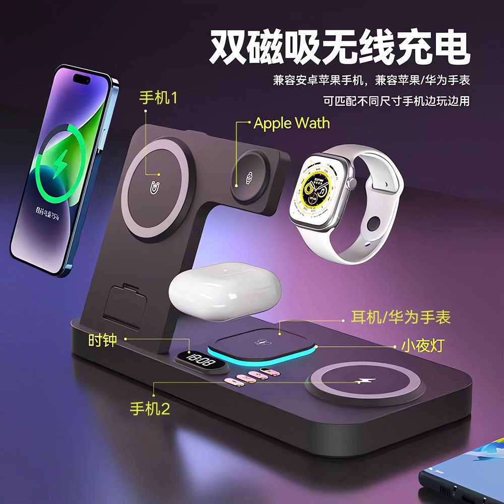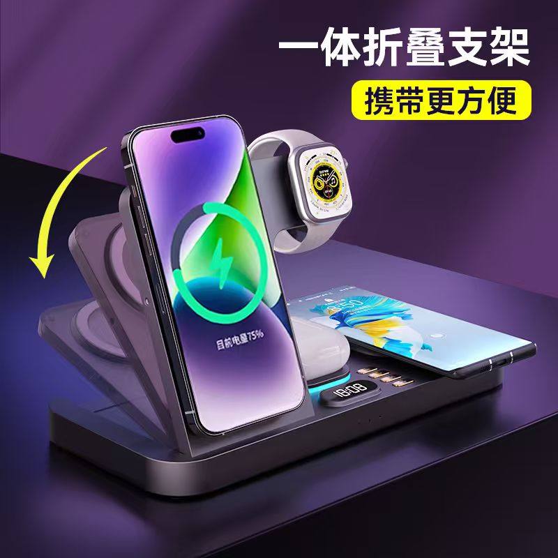 双手机】妙酷磁吸四/三合一无线充电器magsafe快充底座适用苹果iPhone17promax手机applewatch手表iwatch支架