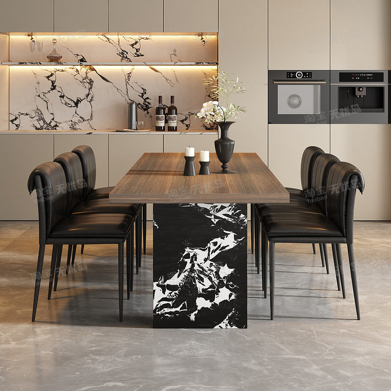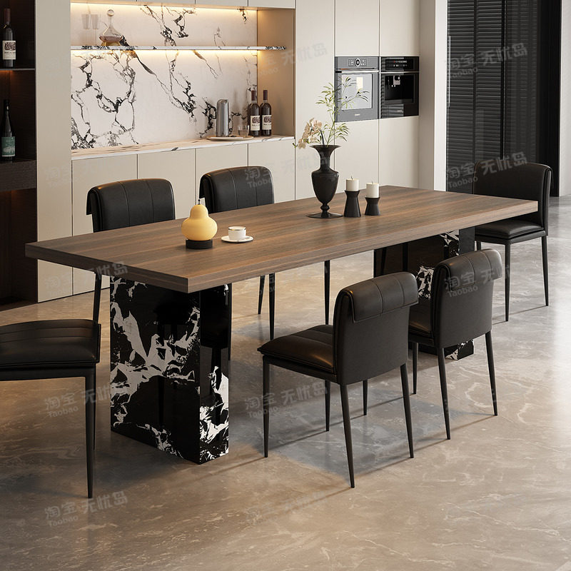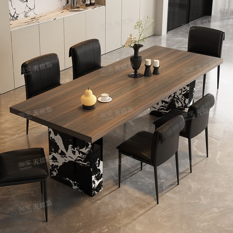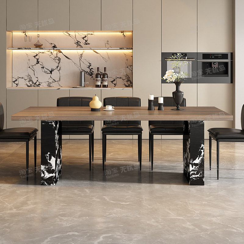 意式极简木纹轻奢全岩板岩板餐桌加厚下挂小户型木纹长方形家用桌