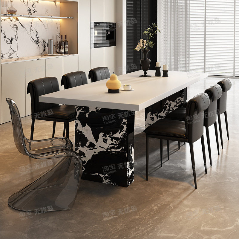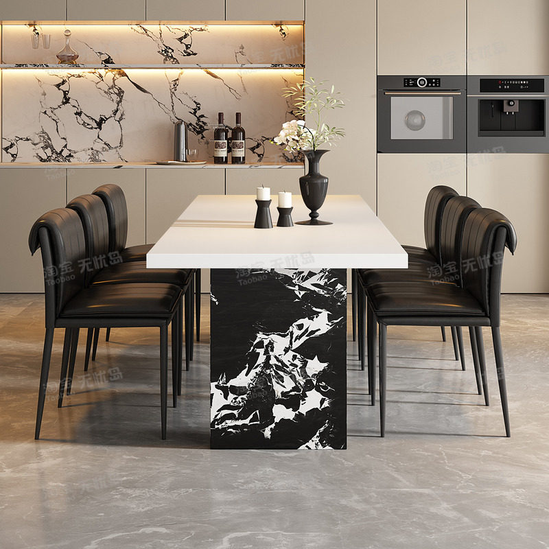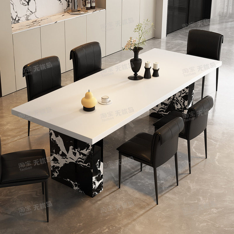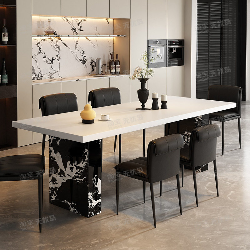 轻奢高级意式宝格丽纯白岩板餐桌椅组合大小户型长方形茶书饭桌子