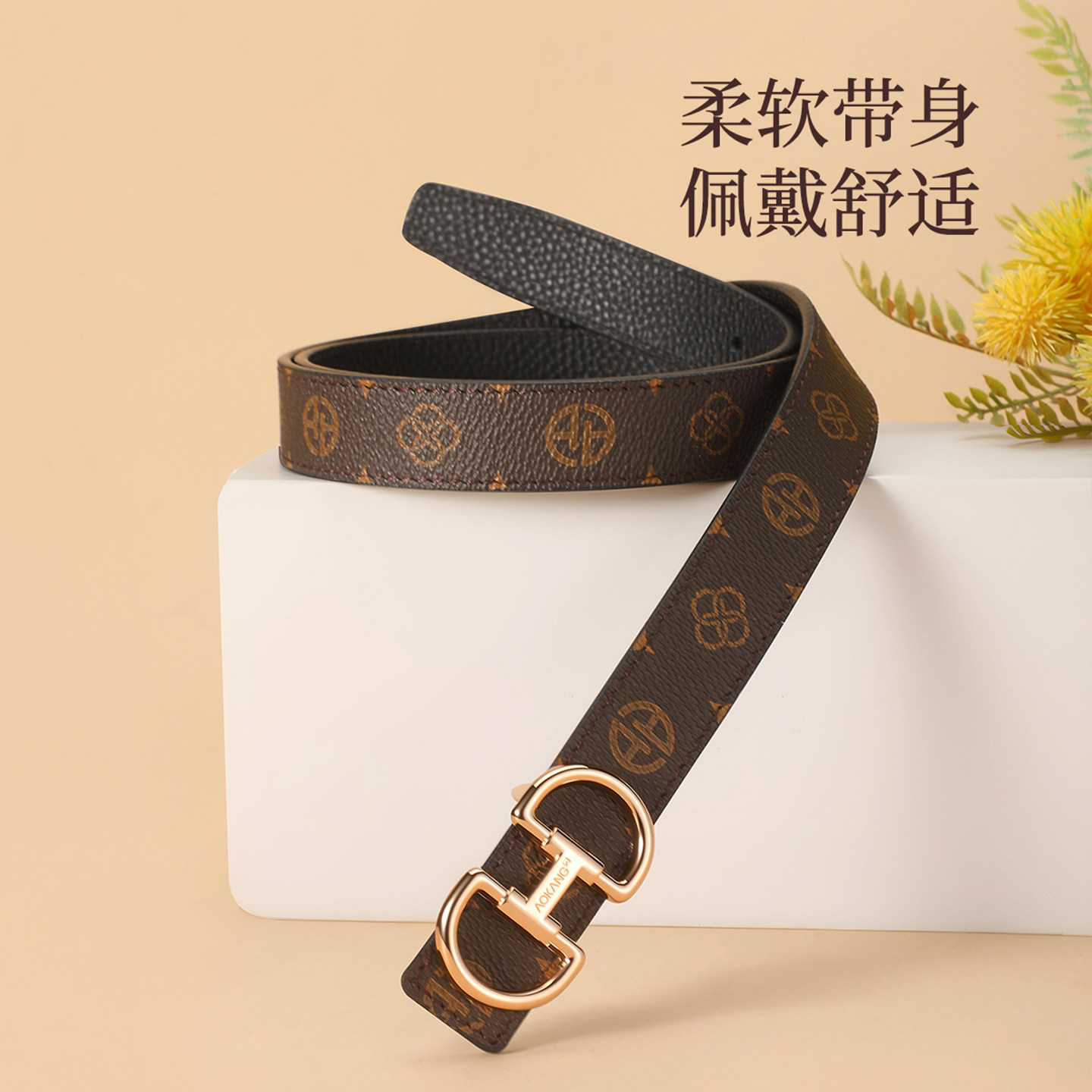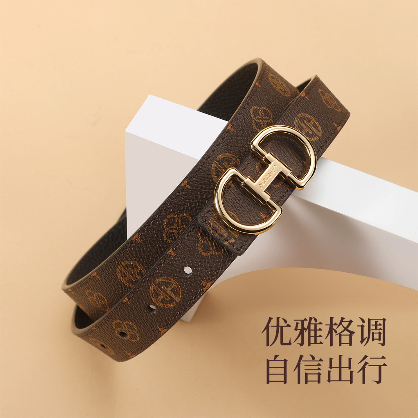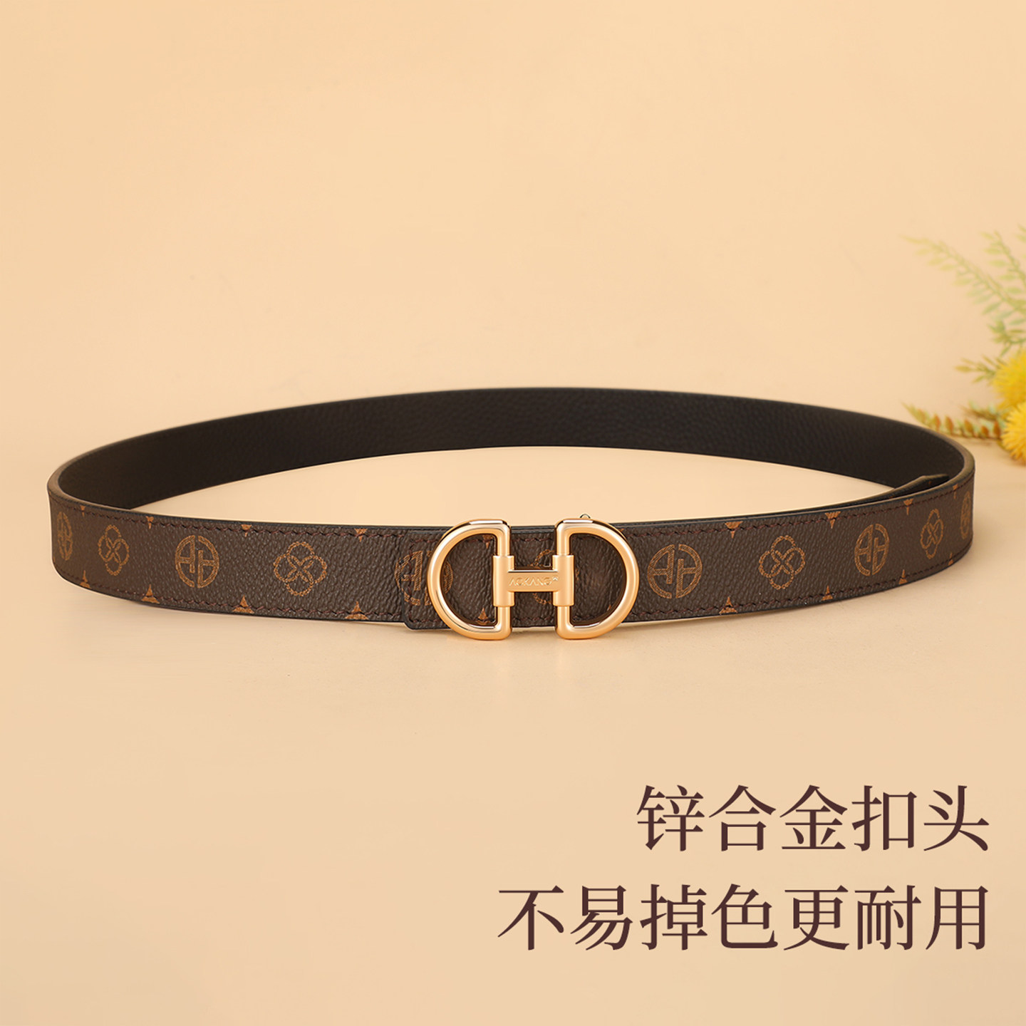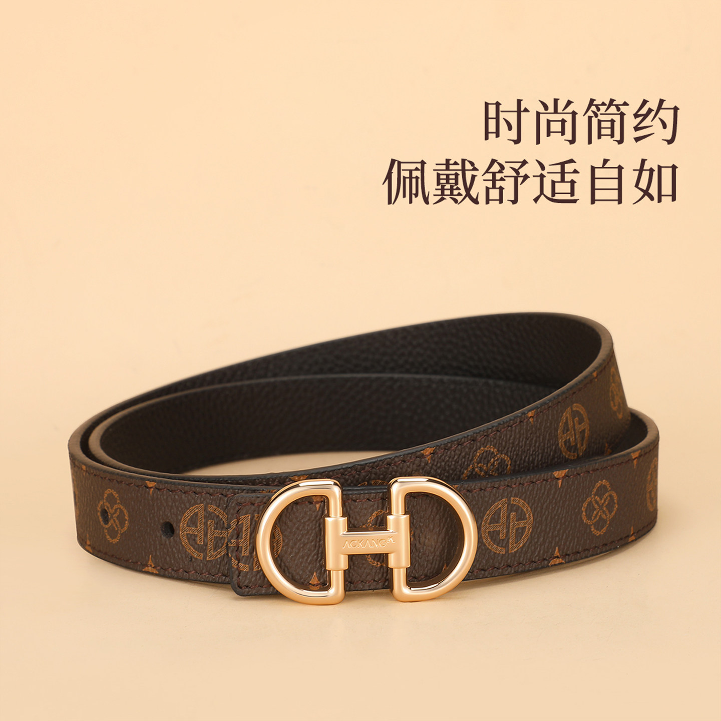 奥康真皮皮带女士时尚潮2026新款配牛仔裤百搭裤带头层牛皮腰带J