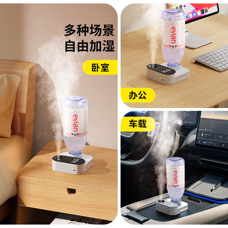 zaiwan矿泉水瓶加湿器usb充电小型迷你卧室家用静音补水大喷雾学生宿舍办公室桌面空气雾化旅行便携车载汽车