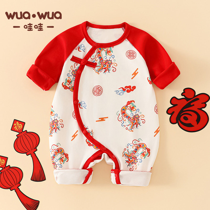 新生儿宝宝纯棉连体衣打底内衣拜年服衣服开裆春秋外出服A类满月