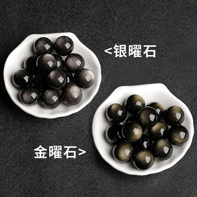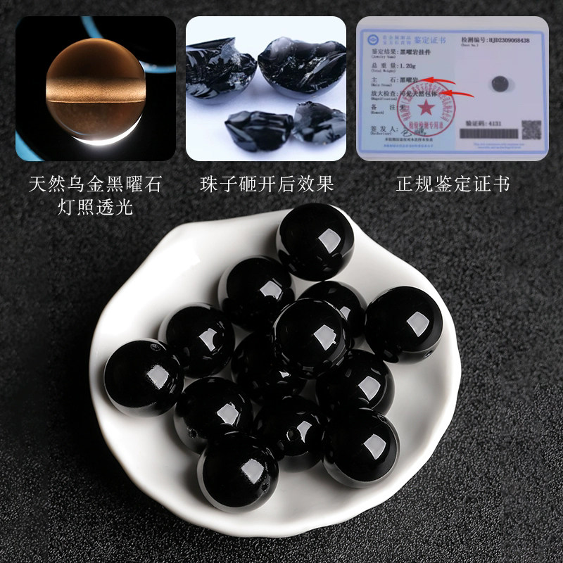 乌金黑曜石散珠子金曜石手链项链串珠配件材料diy水晶饰品手串