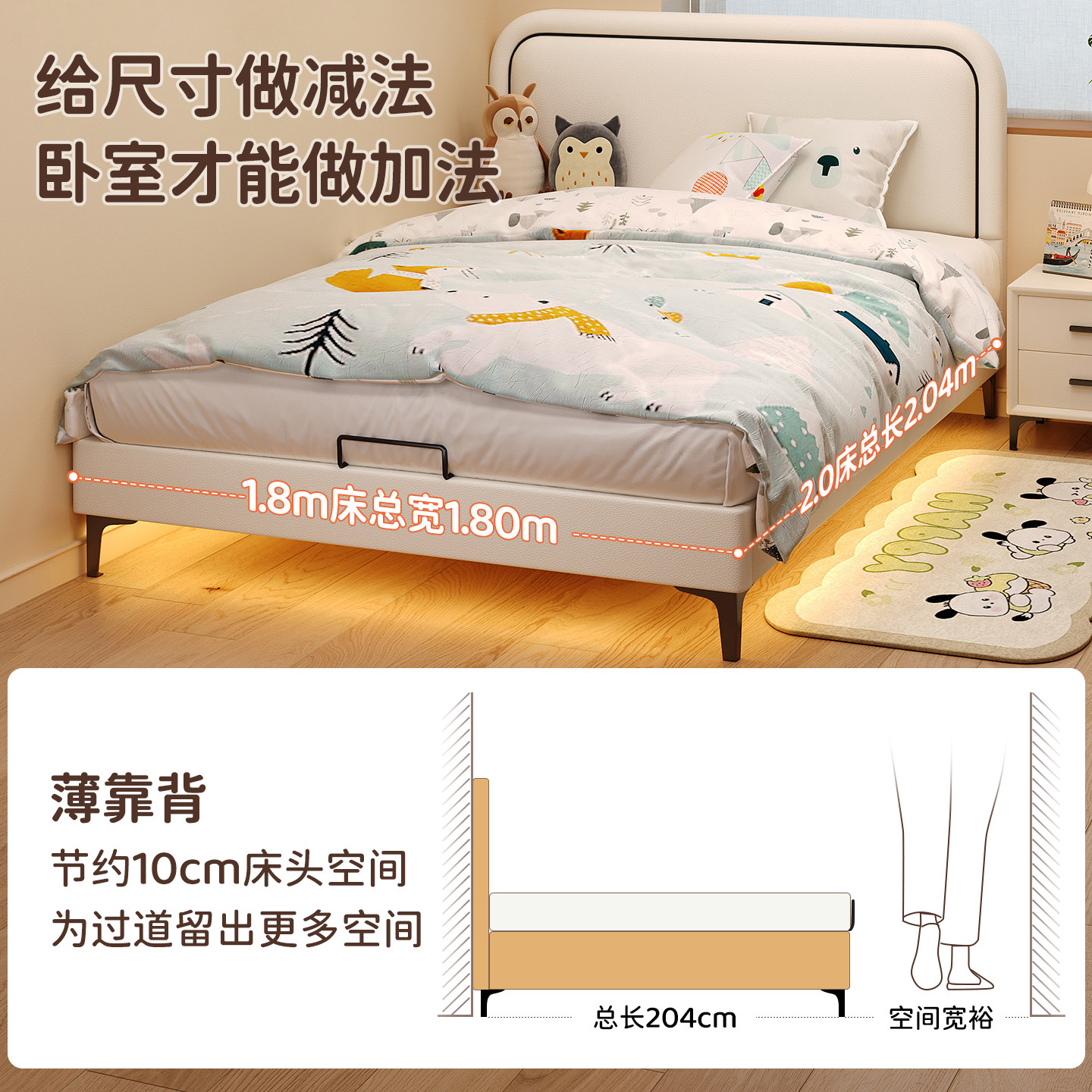 雅兰儿童实木床现代轻奢1.2m单人床卧室青少年卡通皮床男孩奇遇虎