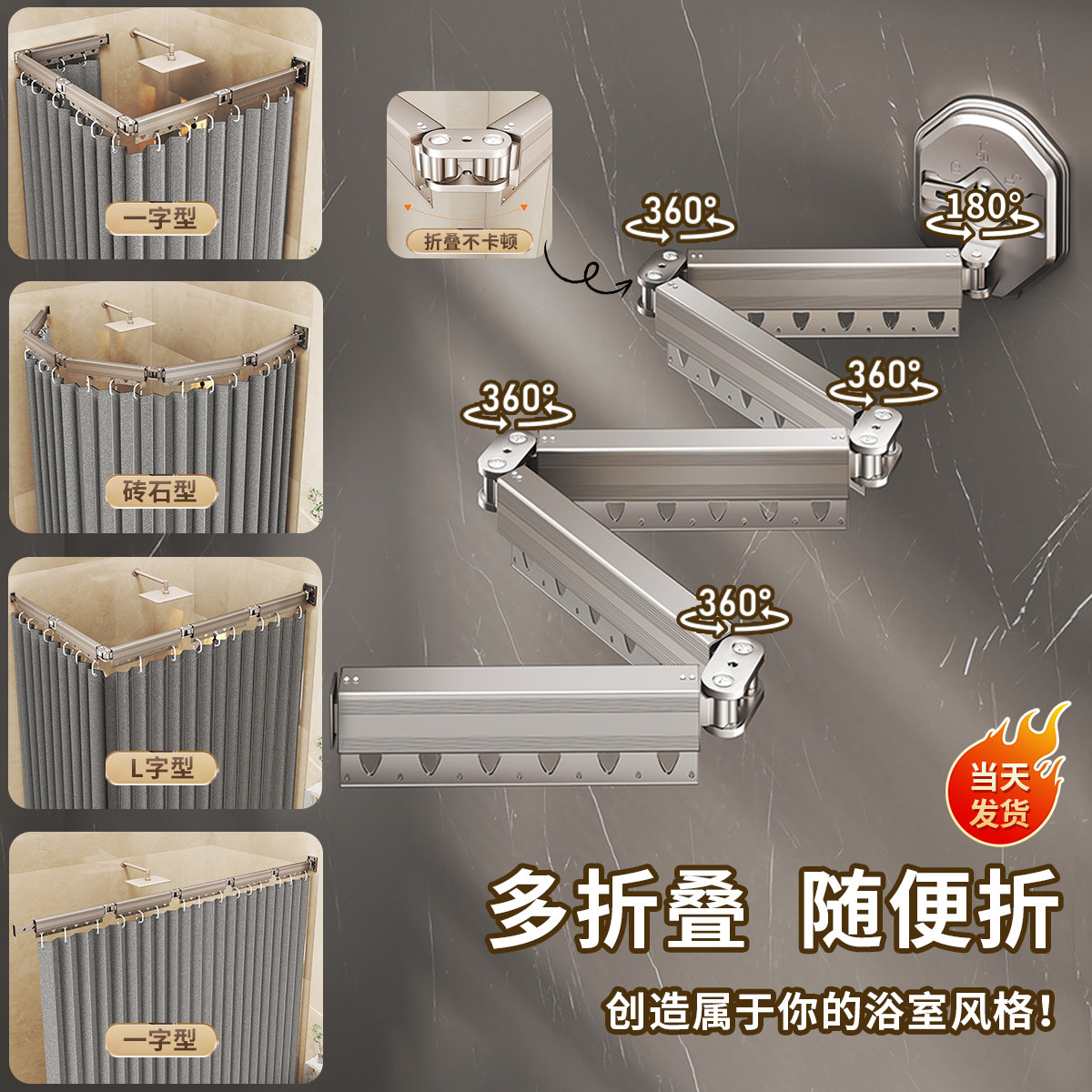 浴室浴帘吸盘折叠隐形免打孔高档卫生间洗澡防水隔断干湿分离防霉