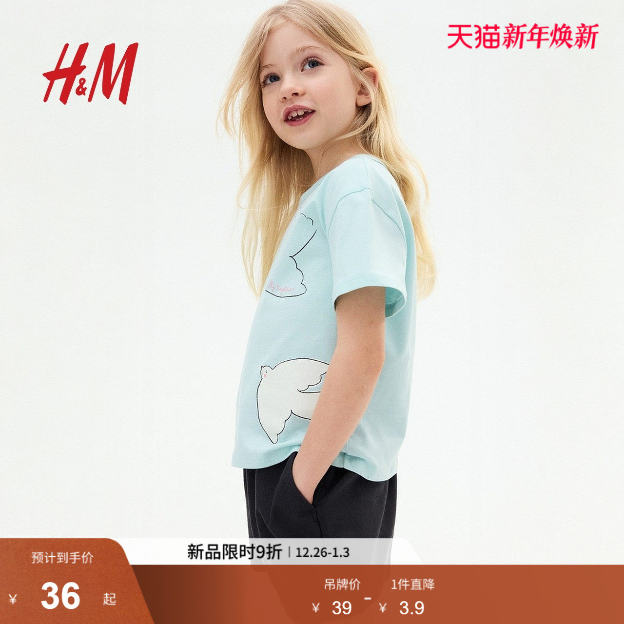HM童装儿童女童T恤2025新款宽松圆领童趣印花亮红色上衣1276711