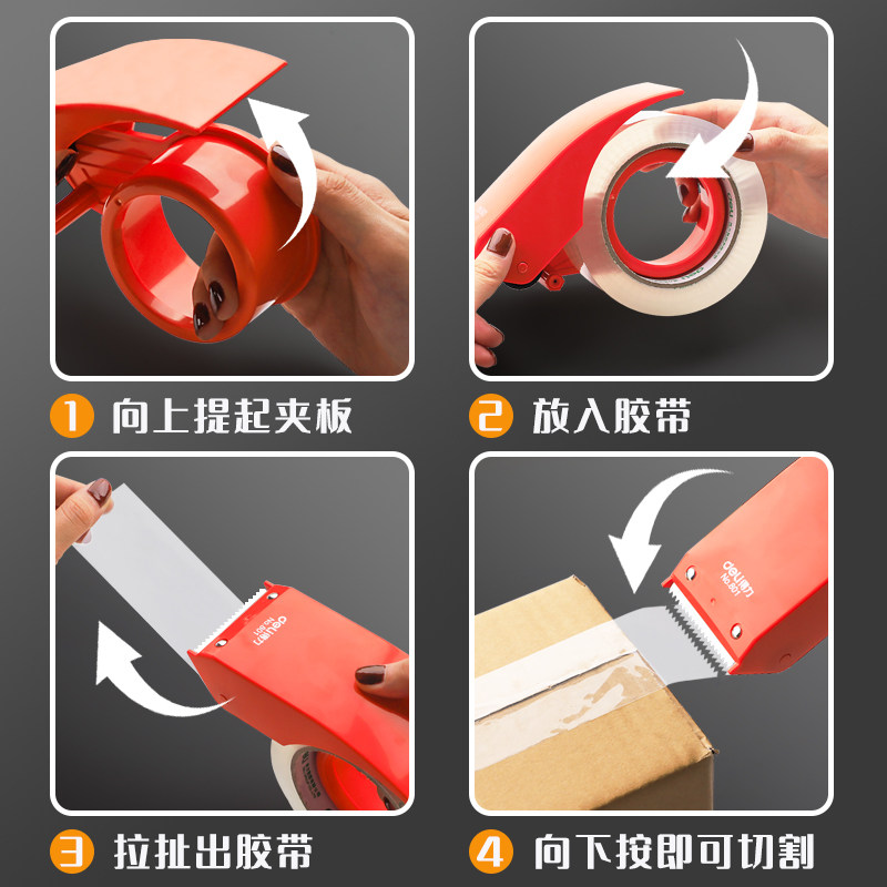 得力金属封箱器透明胶带切割器工具铁快递打包神器6cm大号手动宽胶布4.8cm小号胶布机胶纸封口胶封箱带打包器