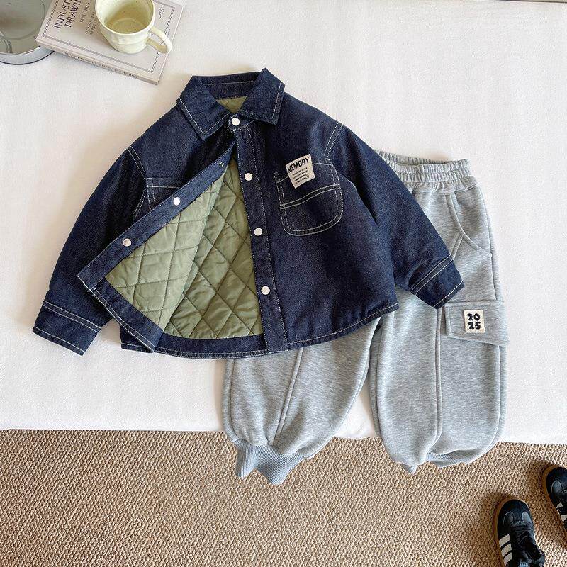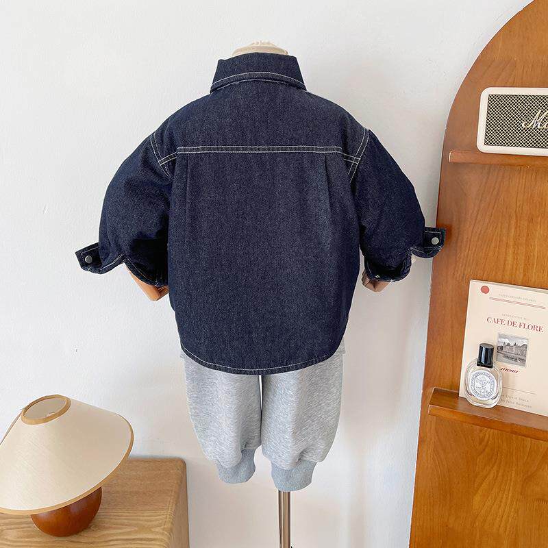 2025冬季新款童装儿童帅气夹棉牛仔衬衫男女童百搭洋气外套