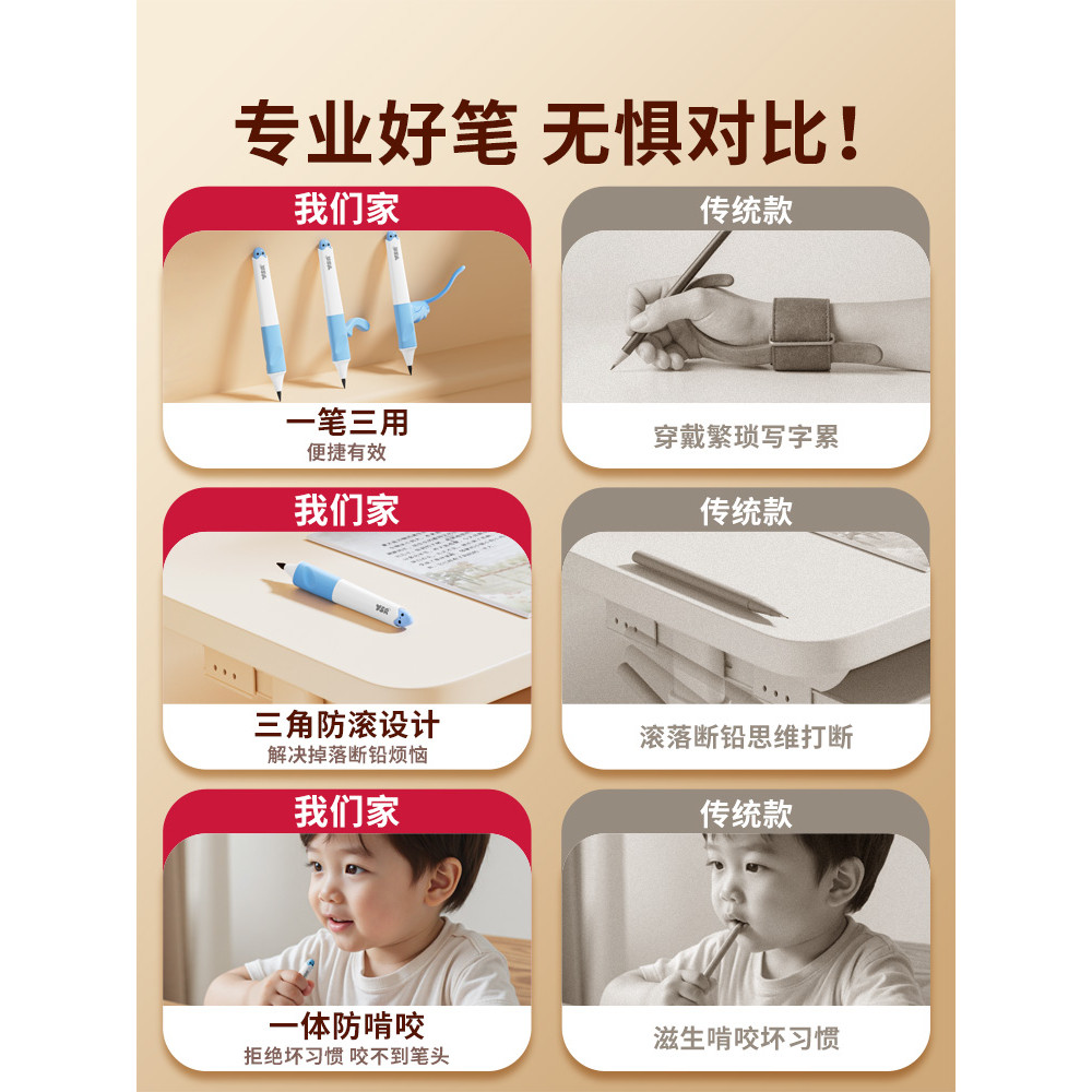 YSR奕思瑞儿童自动正姿矫正铅笔幼儿园初学者一年级二年级小学生练字专用不用削高颜值无毒大三角ysr铅笔3.15
