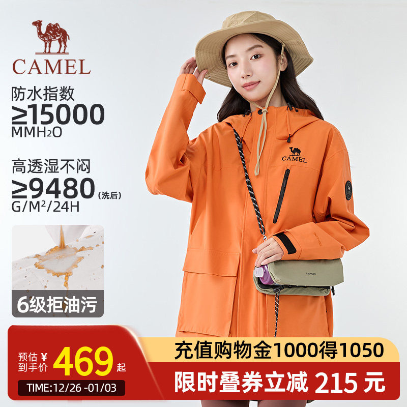 骆驼女装单层冲锋衣2025秋冬新款户外防风防水连帽立领男女款外套
