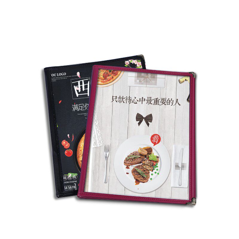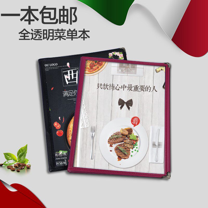 菜谱本点餐本A5透明菜单本4页8面PVC西式餐夹价目表制作酒水夹
