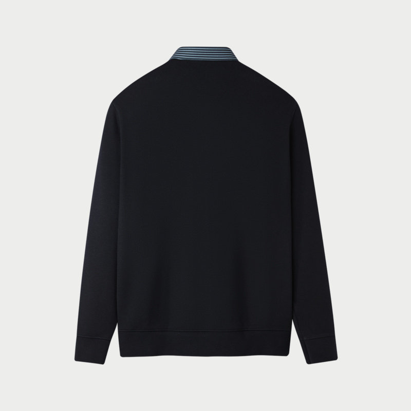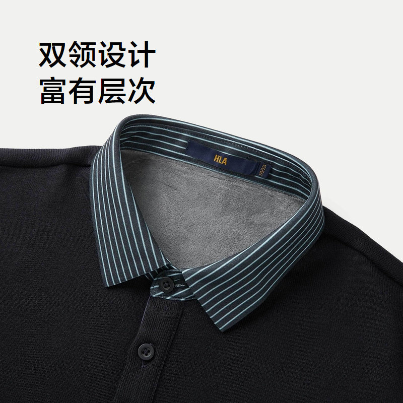 HLA/海澜之家加绒保暖针织衫2024秋冬新款时尚假两件衬衫领上衣男