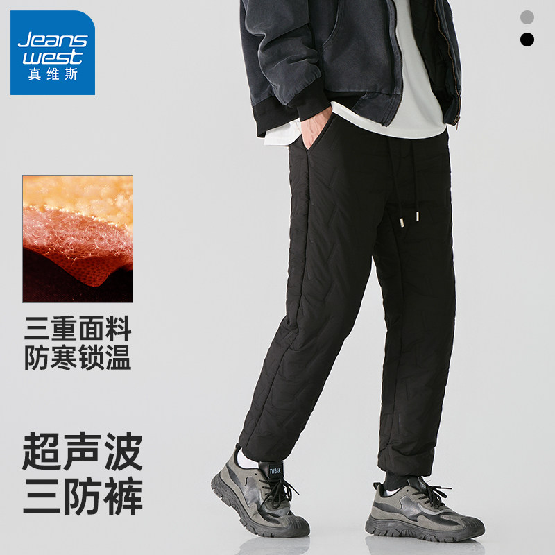 GV真维斯防风保暖棉裤男秋冬季加绒加厚束脚裤男士三防休闲裤子A