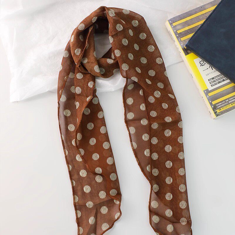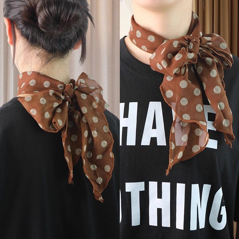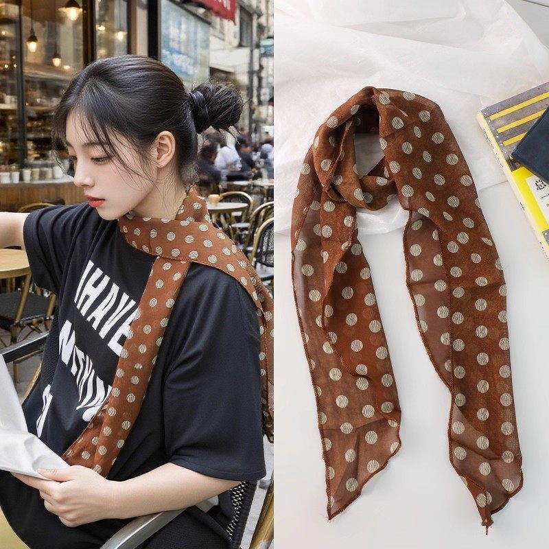 棕色波点丝巾印花高级百搭配饰系脖女2025年新款发带绑发长条围巾