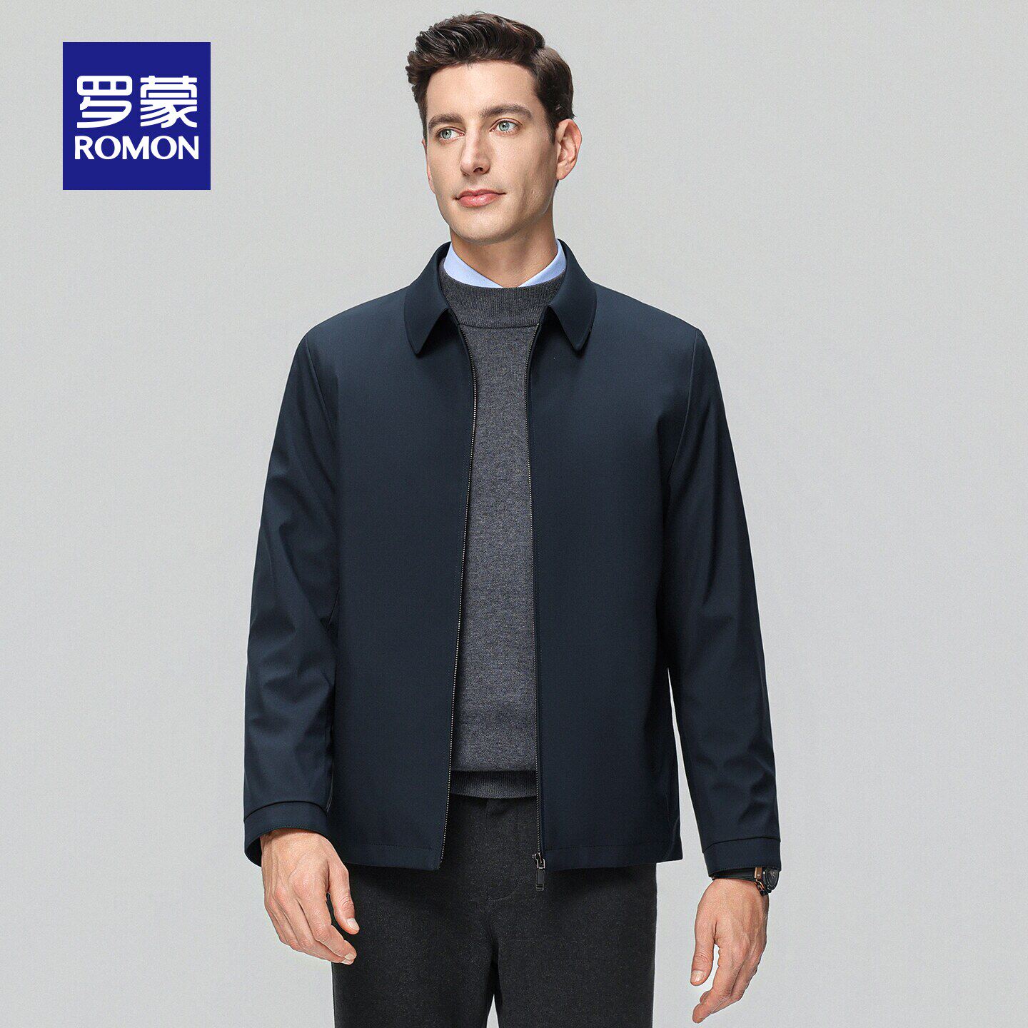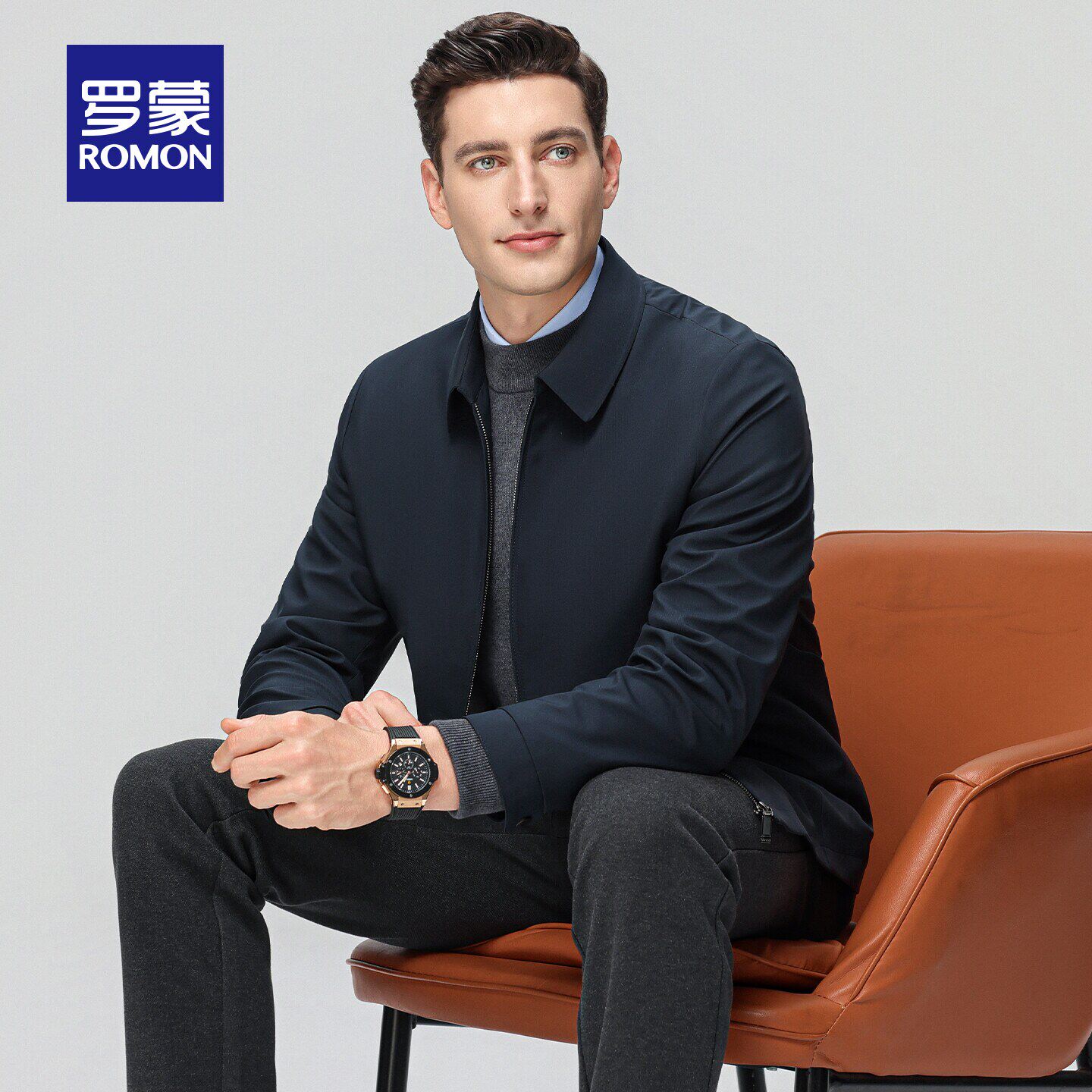 罗蒙男士商务休闲短款翻领夹克2026春季新款行政干部风爸爸装外套