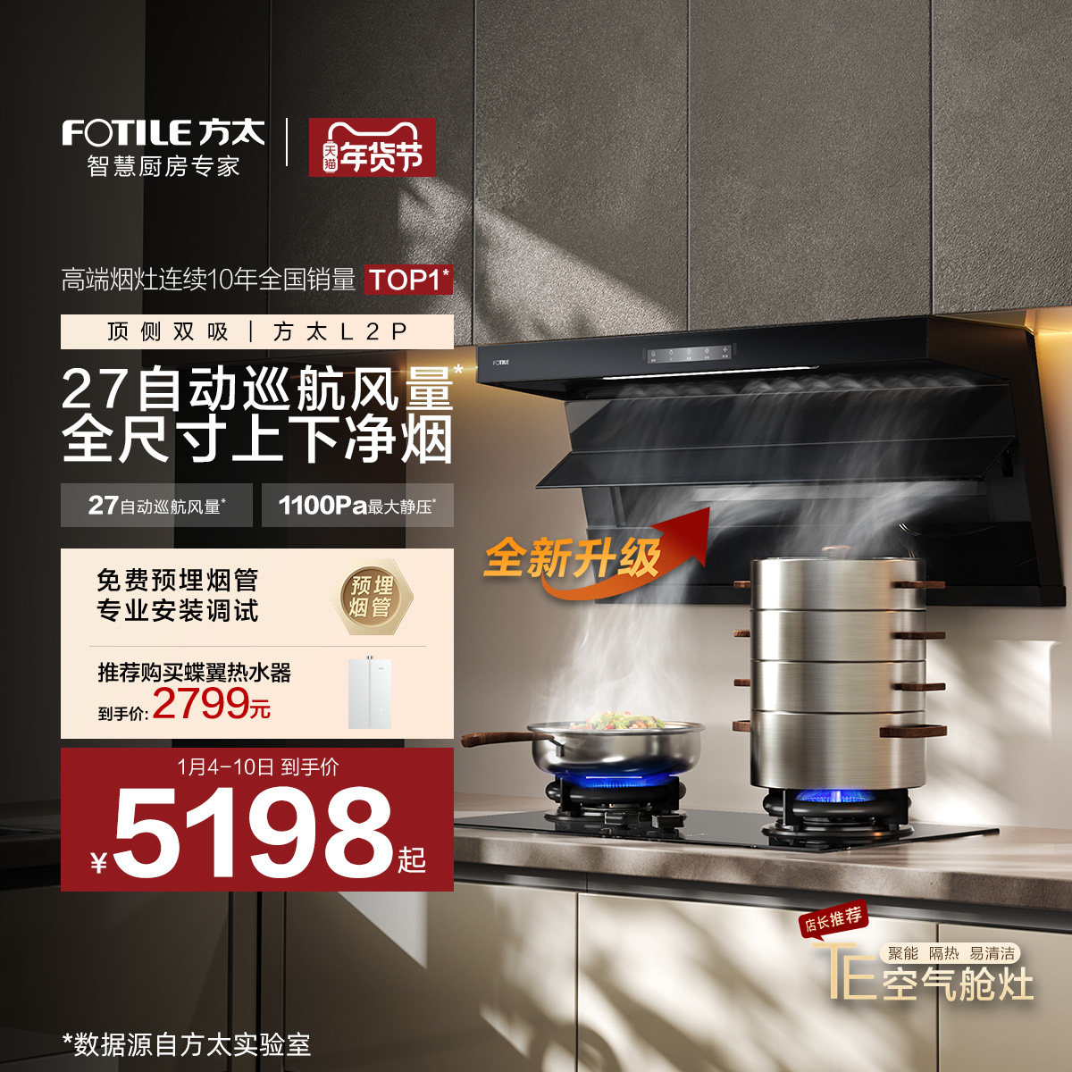 [顶侧双吸]方太L2P抽油烟机燃气灶具厨房家用官方旗舰店套装套餐