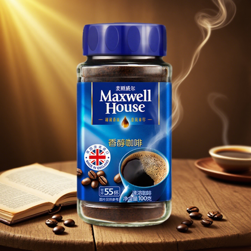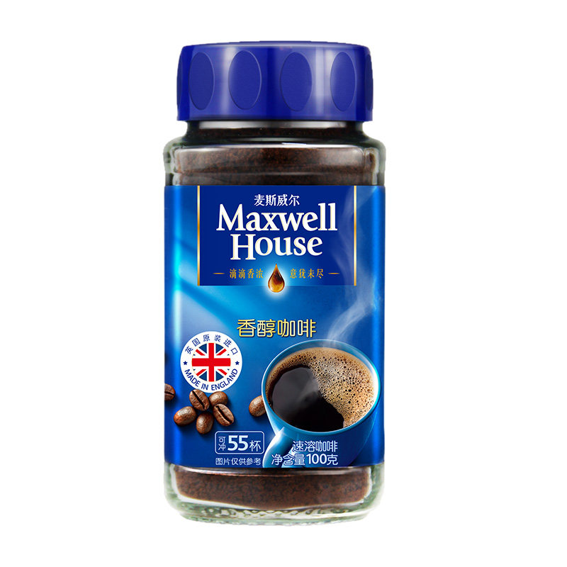 英国进口麦斯威尔咖啡香醇美式黑咖啡正品无蔗糖速溶咖啡粉瓶装