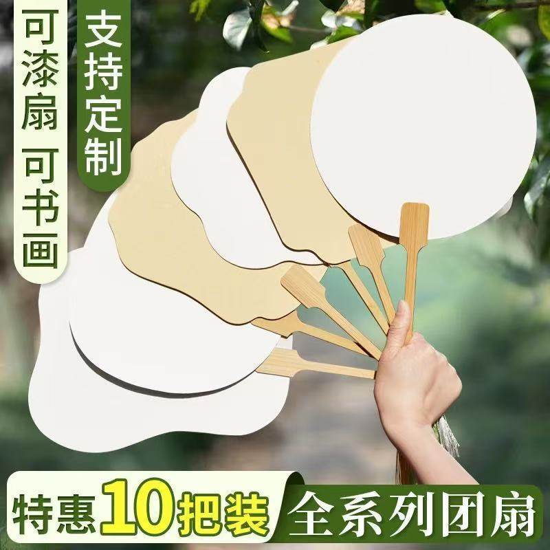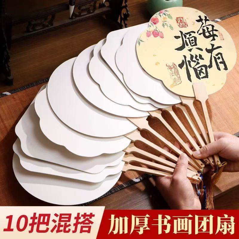 加厚宣纸团扇漆扇圆形扇子空白绘画美术扇子手工diy扇子熟宣纸练字手工DIY流苏通用型高端中式古韵古色古香