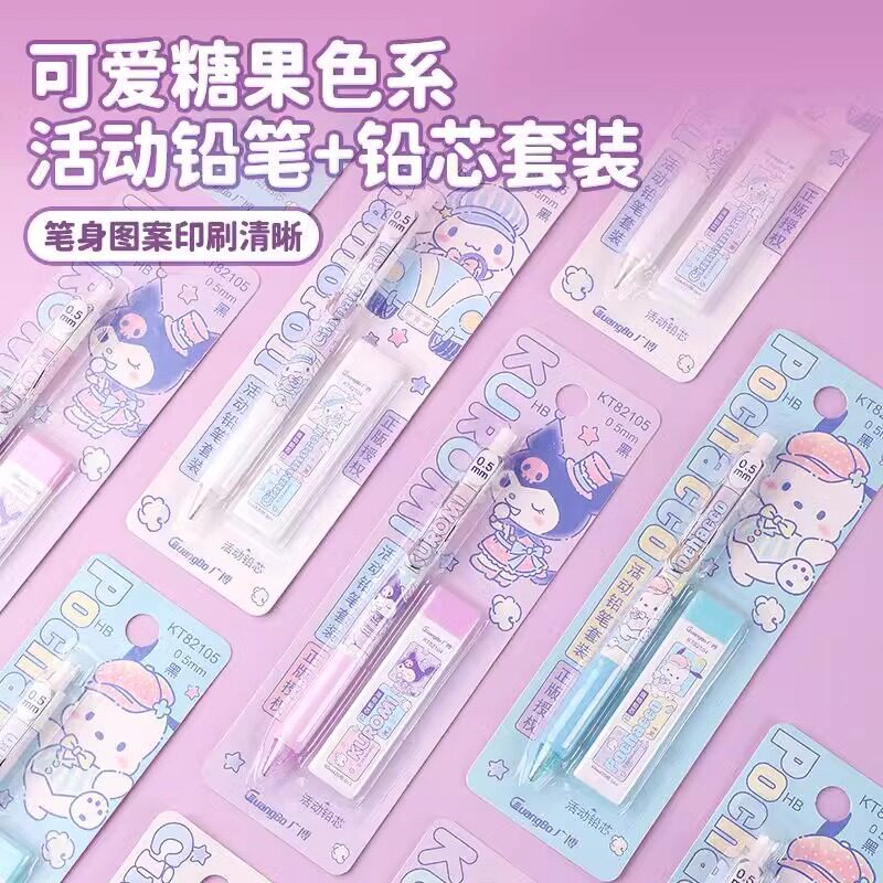 广博三丽鸥自动铅笔小学生专用0.5库洛米自动铅笔0.7儿童高颜值文具玉桂狗自动铅笔带橡皮帕恰狗自动笔送铅芯