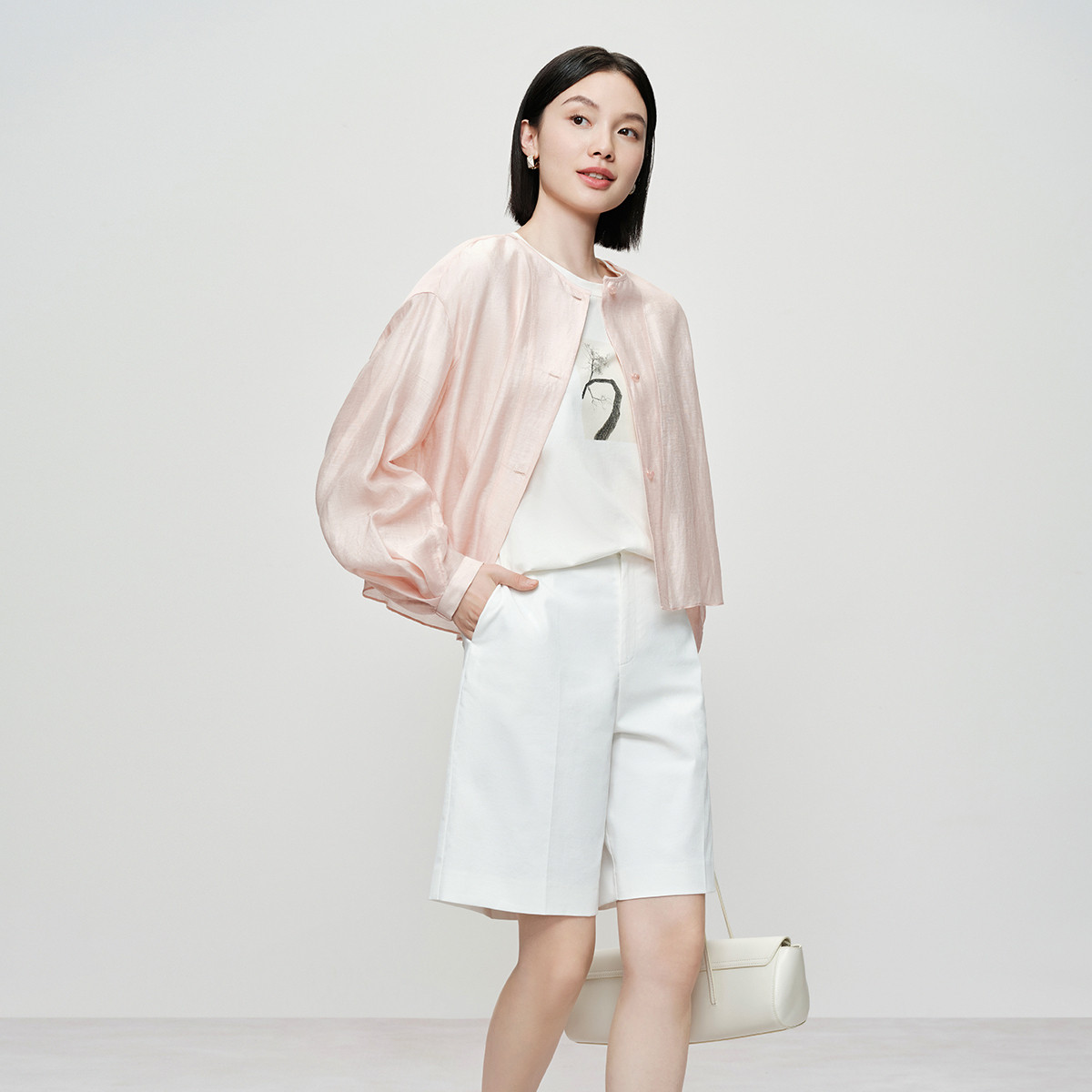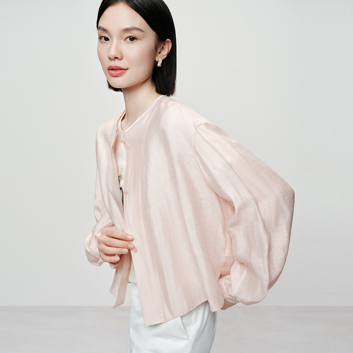 【雨露麻衬衫】盈盈粉新中式naivee26夏新款麻混纺外套轻薄透气