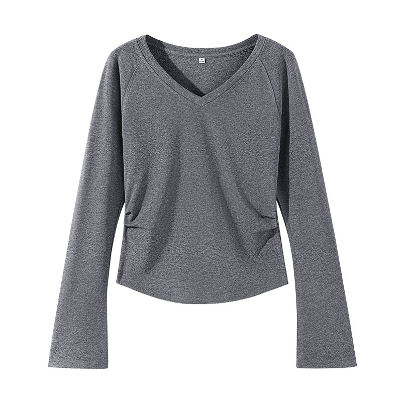 v领长袖t恤 柔软舒适 时尚百搭 修身显瘦