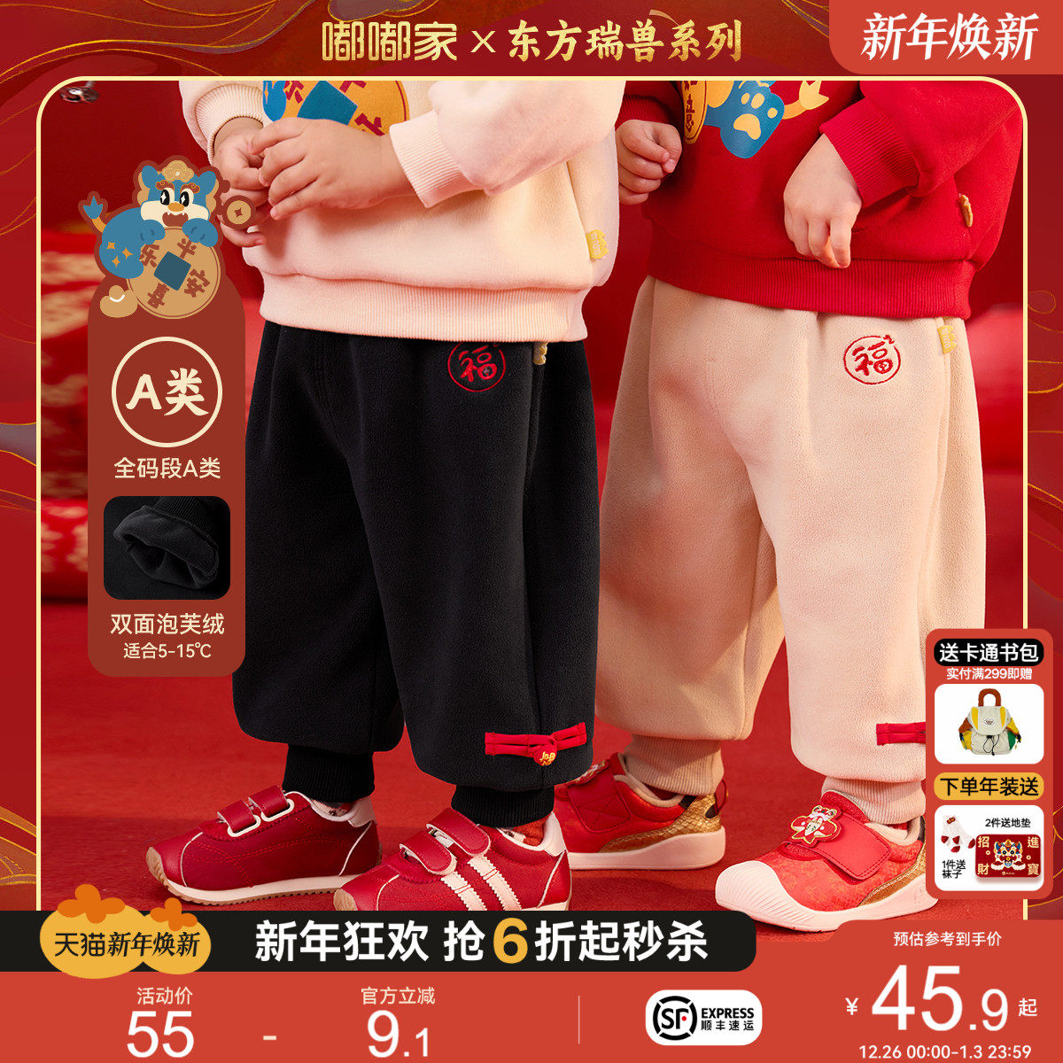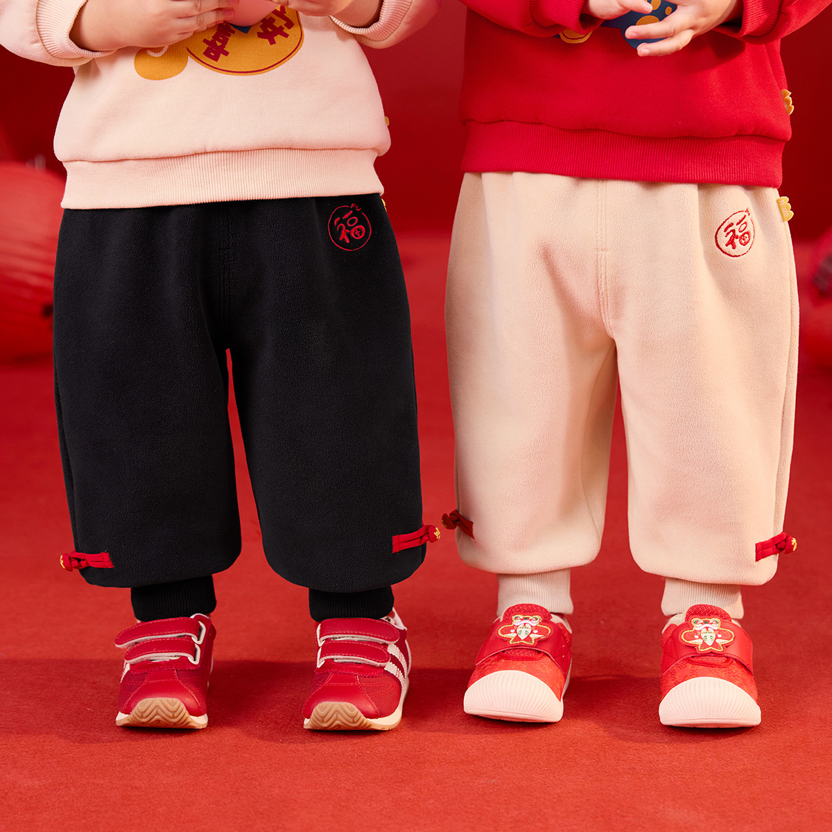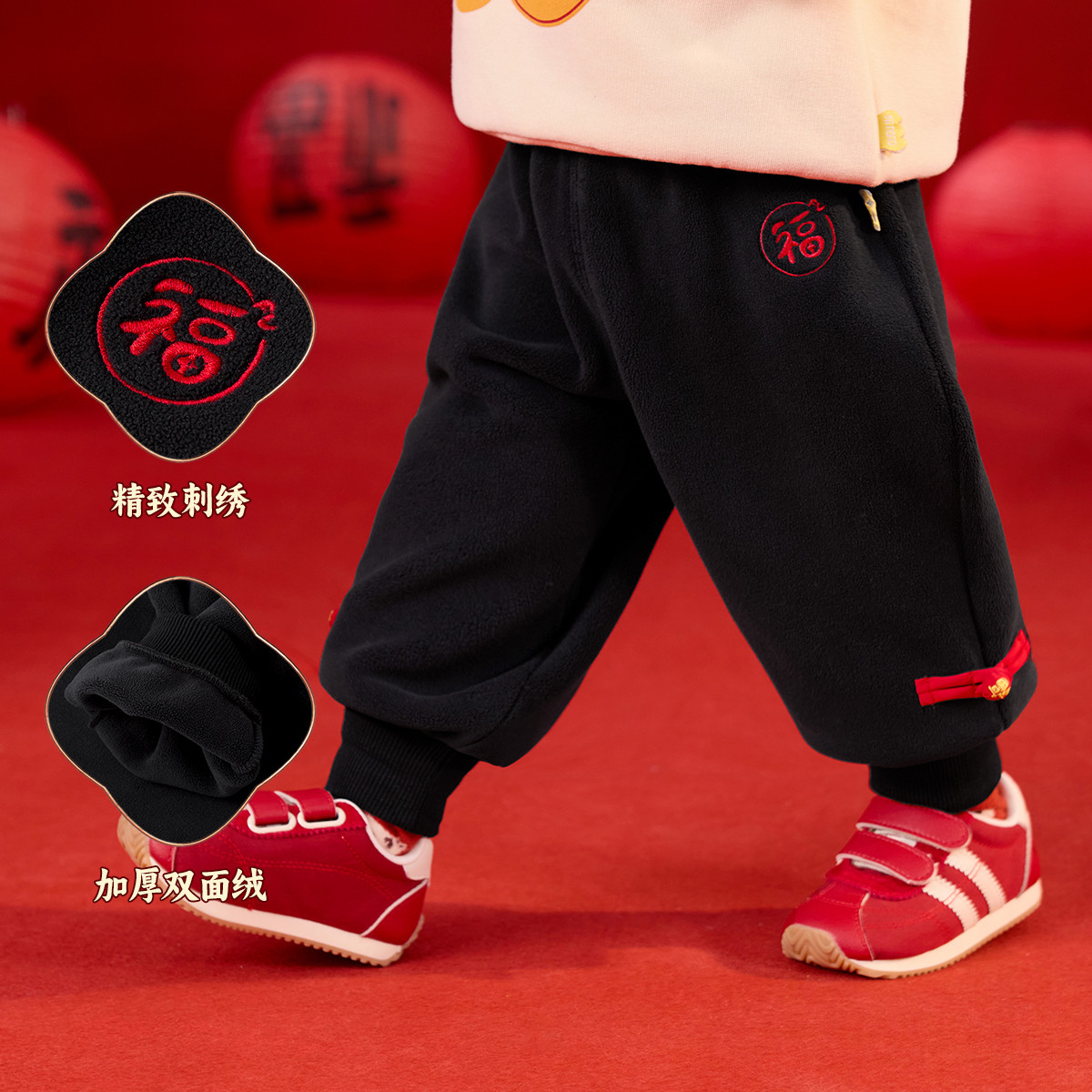 嘟嘟家儿童中式唐装男童新年喜庆拜年服女童加绒裤子宝宝周岁礼服