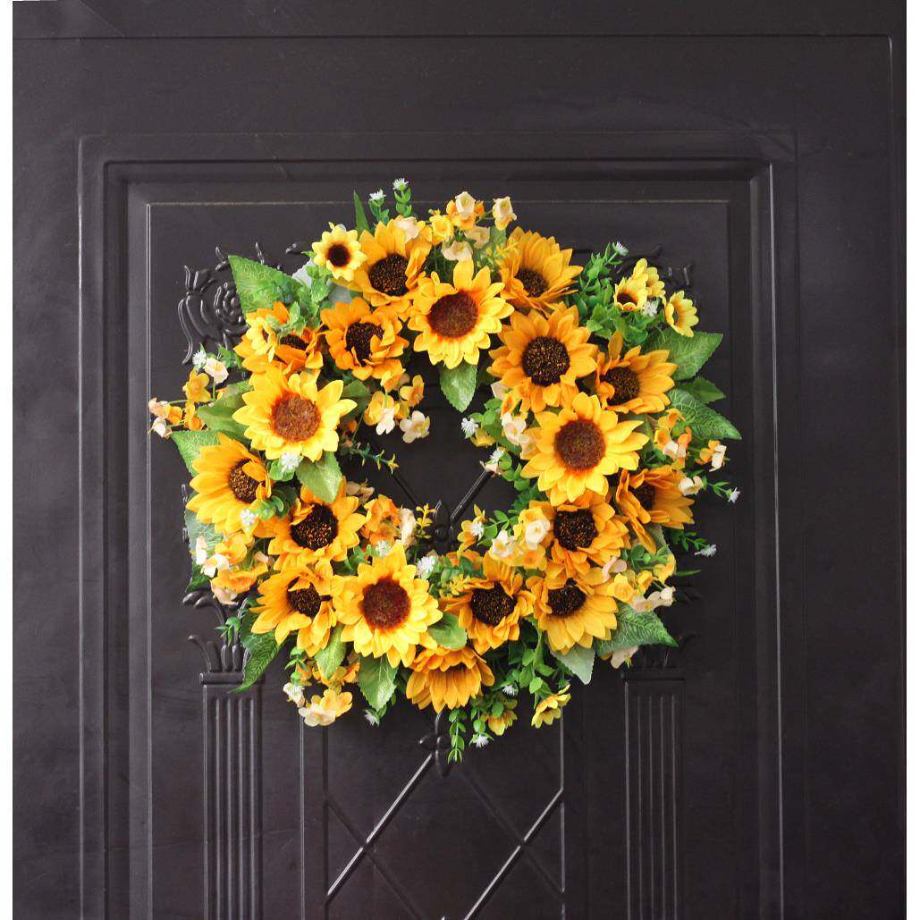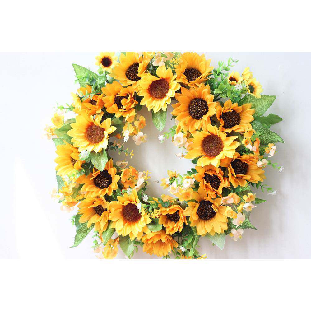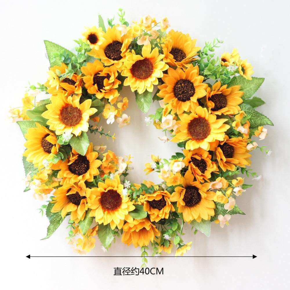 仿真绢布40CM向日葵花环门饰门环壁饰墙饰节日装饰绢花厂家货源