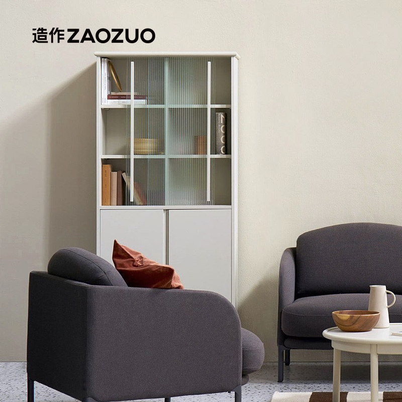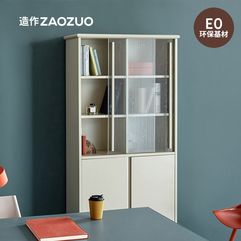 造作美术馆书柜实木长虹玻璃北欧现代简约酒柜奶油色ZAOZUO