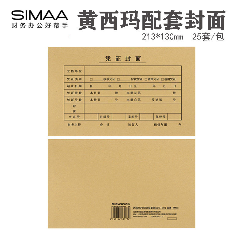 100套西玛FM111凭证封面SKPJ101凭证封套牛皮纸凭证皮会计档案管理封面213*130mm财务凭证装订皮用友软件专用