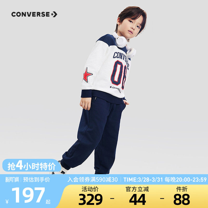 匡威童装男童套装2026春季新款中大童卫衣长裤两件套休闲学院风