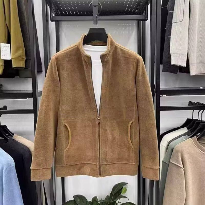 摇粒绒夹克男士秋冬季抓绒衣外套保暖中年立领开衫春秋款卫衣加绒