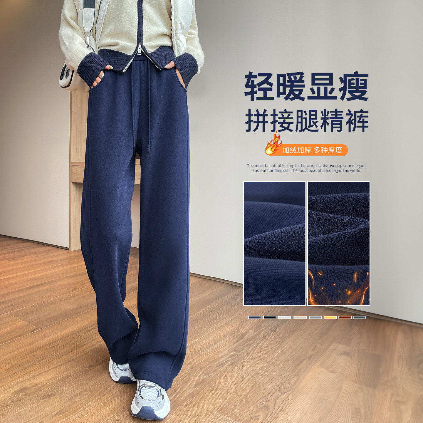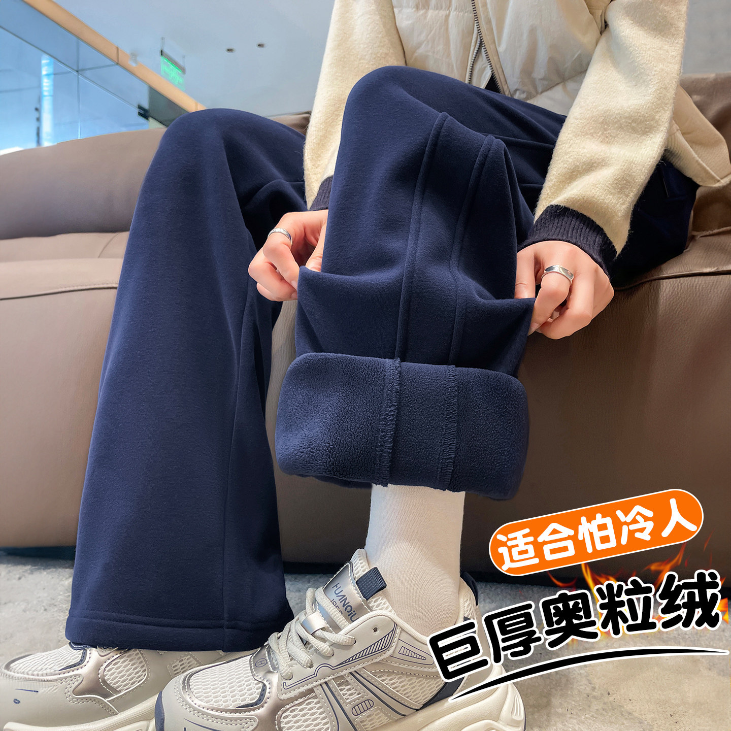 杨幂同款SIINSIIN2025新款白色加绒直筒裤女冬季厚显瘦运动小个子