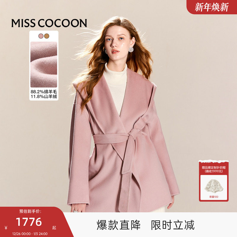 可可尼COCOON2025冬季新款收腰羊毛大衣V型大翻领通勤毛呢外套女