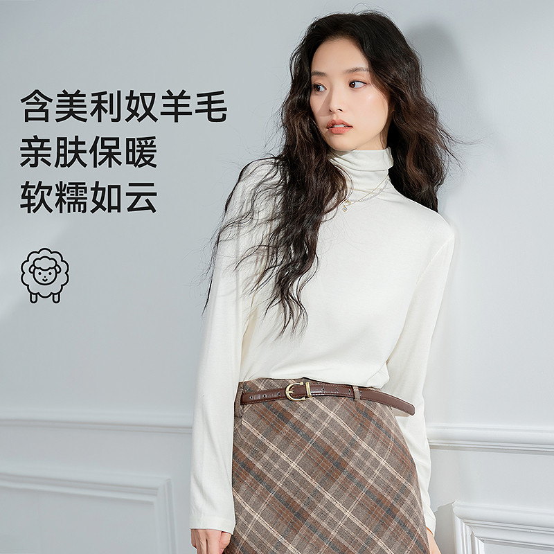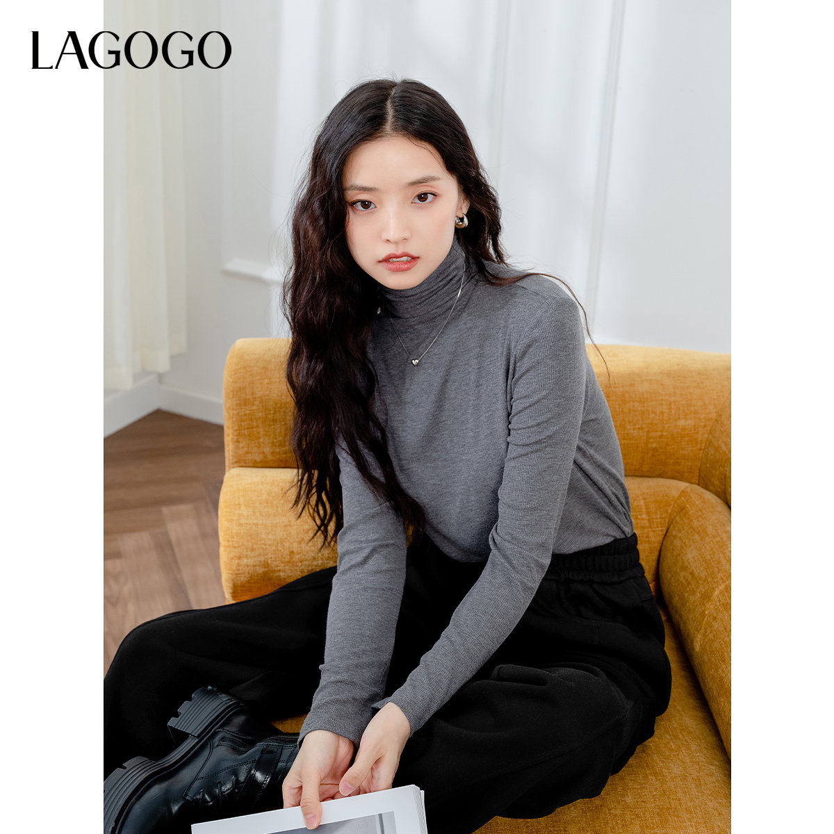 LAGOGO高领针织打底衫女拉谷谷冬季新款含美利奴羊毛上衣T恤