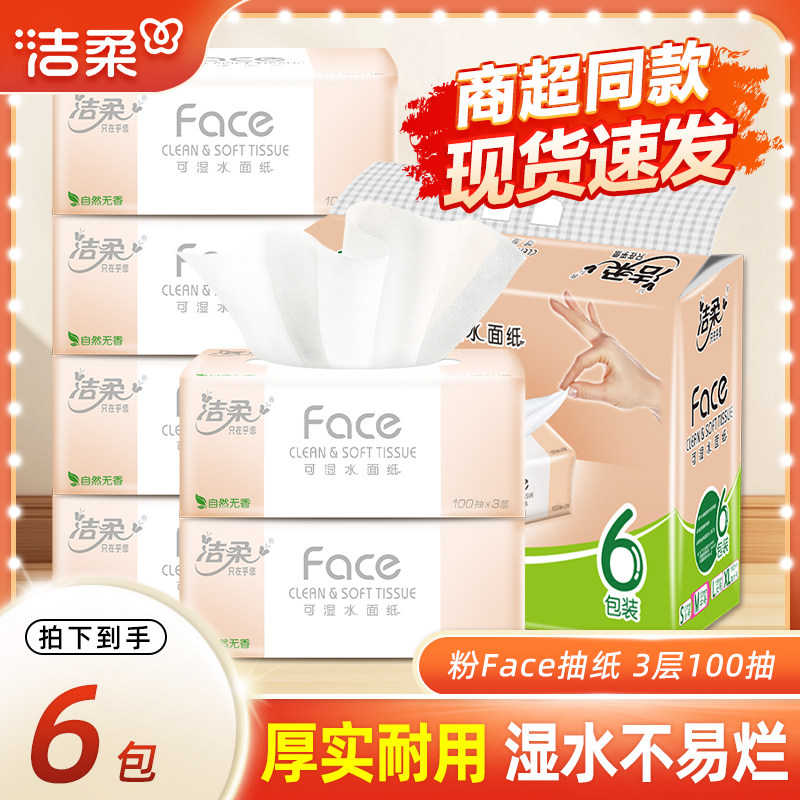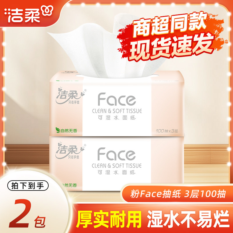 洁柔抽纸粉FACE自然无香可湿水面巾纸100抽餐巾纸擦手纸实惠厕纸