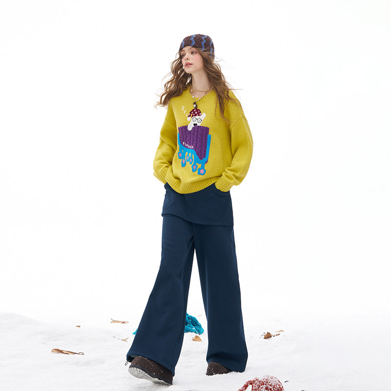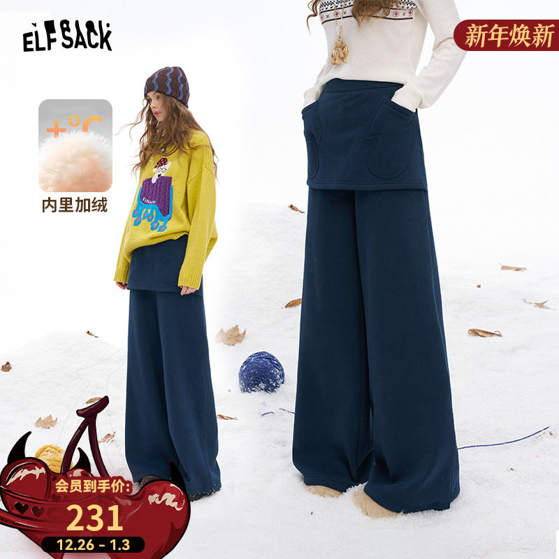 妖精的口袋假两件屁帘加绒休闲裤女2025年冬季新款宽松阔腿裤子