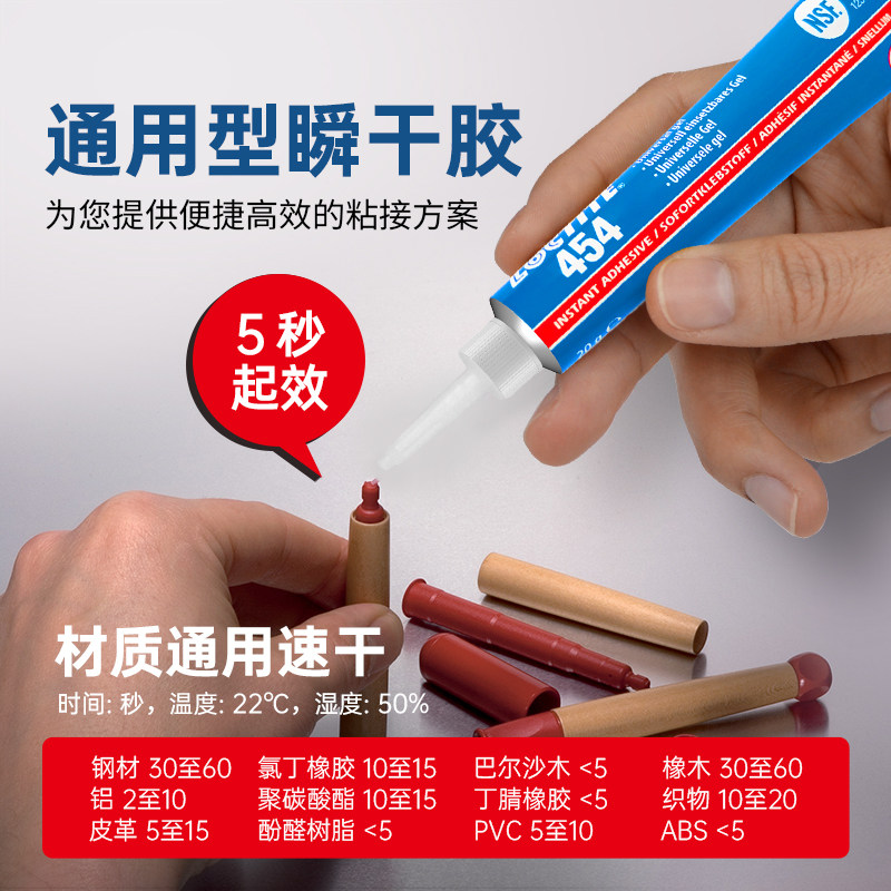 爱尔兰进口LOCTITE汉高乐泰454啫喱状凝胶水102瞬干胶瞬间胶快干胶木材金属皮革粘接皮包沙发皮具皮衣修补
