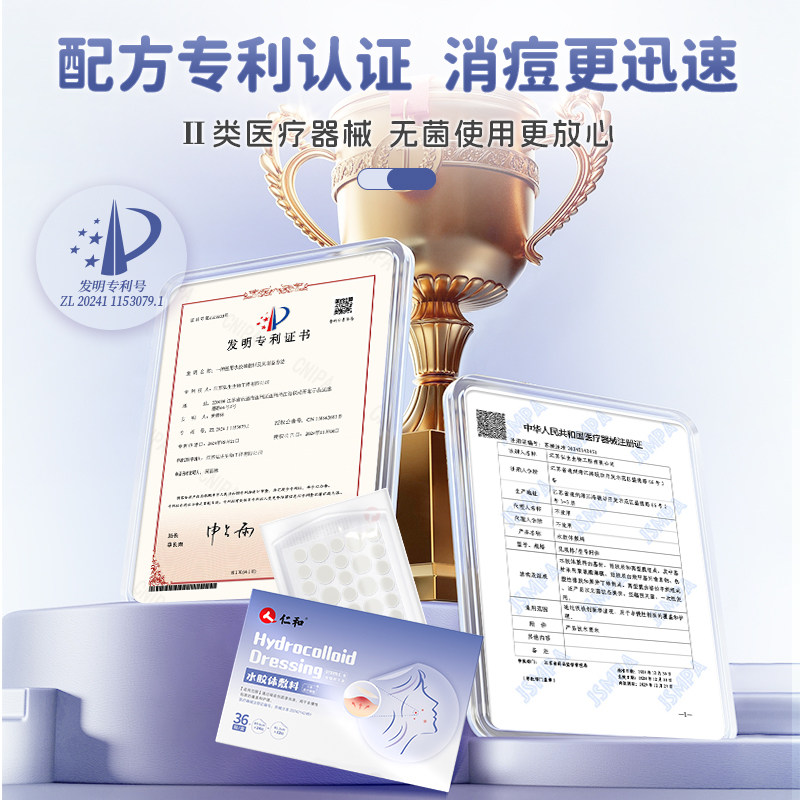 仁和医用型痘痘贴修复消痘印炎隐形祛痘贴水胶体敷料人工皮无菌