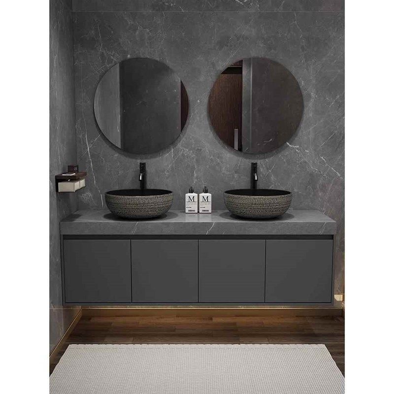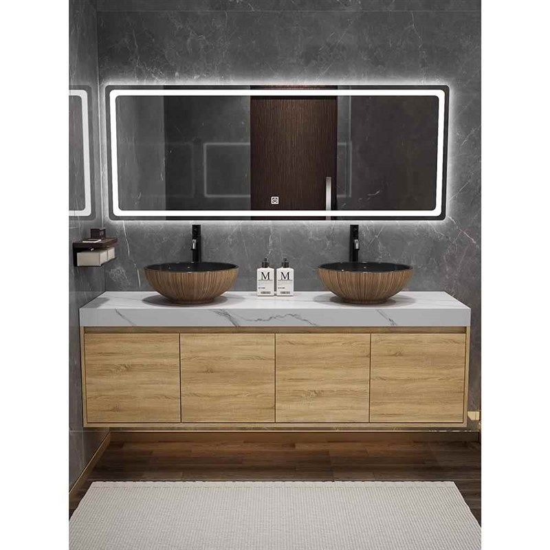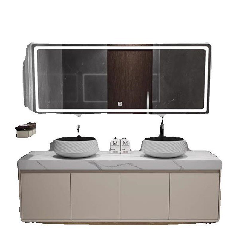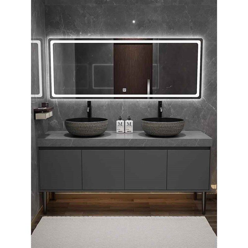 定制岩板双台盆浴室柜台上盆卫生间洗手盆柜组合中式卫浴柜洗漱台