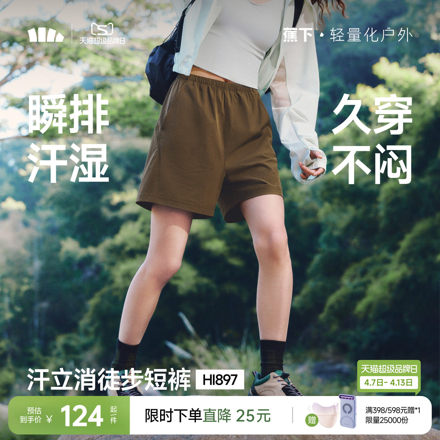 蕉下徒步短裤女速干凉感高弹棉感短裤休闲裤