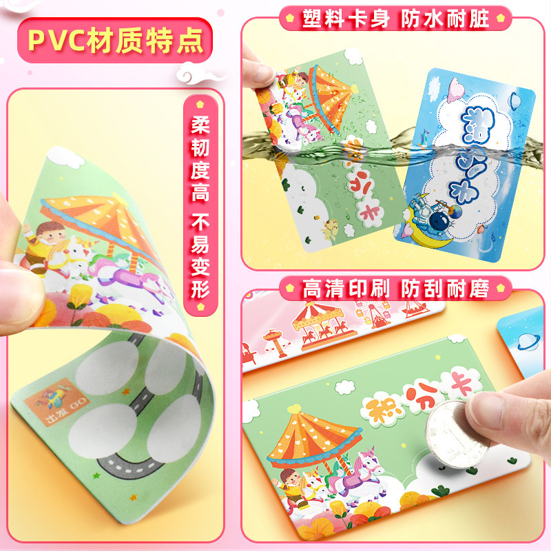 昕果小学生表扬卡双面小游戏互动权限卡教学鼓励卡片学习积分卡班级鼓励儿童表扬奖卡卡通防水PVC塑料