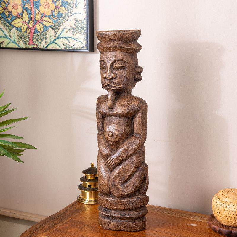 泰式风民宿空间布置软装设计客厅玄关家具装饰部落人偶桌面摆件